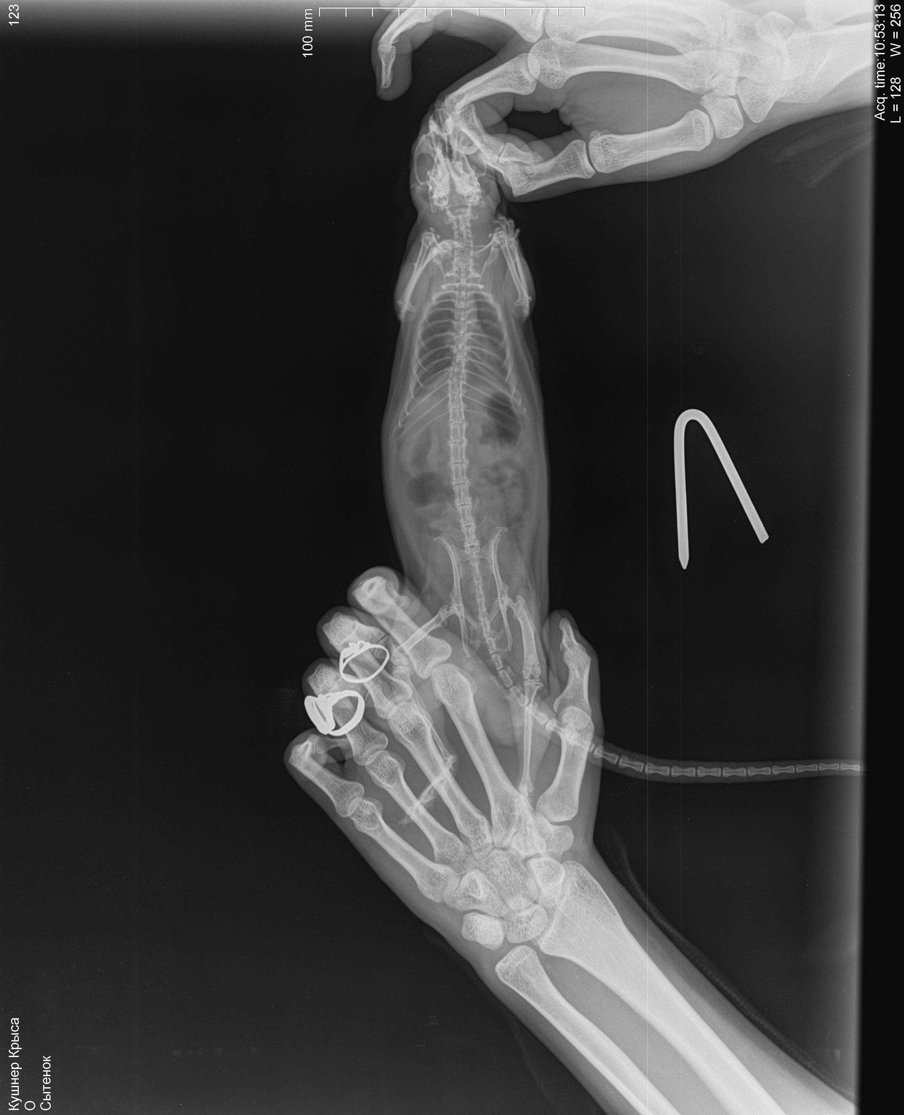 6 декабря свозила к ветеринару, послушали - услышали хрипы, больше слева, сделали рентген, врач сказала, что вероятнее всего пневмония, назначила синулокс 0,15мл в/м 1 раз в день, катозал 0,3мл 1 раз в день. По-моему стало немного получше, начал умываться. Дома пару раз пытался попить, но такое ощущение, словно захлебываться начинает и перестает, стал незначительно активнее. 8,9 декабря возила его на оксигенотерапию по 1 разу по 20минут, в состоянии особо изменения не заметила. 10 числа ближе к вечеру - крыса сидит на одном место, тяжело дышит, дышит боками, хрипы более выраженные, голова опущена вниз, беспокойный, в руки не дается. Повезла к другому врачу (рабочее время моего закончилось) - сказал, что вероятнее всего отёк легких, сделал инъекцию дексаметазона 0,05мл в/м. Спросила про диуретики, сказала, что не надо, так как дексаметазон будет выполнять эту функцию в том числе. :/ Отметил, что если не поможет, то наварное ничего уже не поможет. Сегодня, 11 числа, стало незначительно лучше, поехала к своему врачу, она была на выезде, приняла другая девушка, сказала что не отёк, т.к. хрипы должны быть другие. Назначила ингаляции беродуала и соответственно продолжать назначенную терапию.