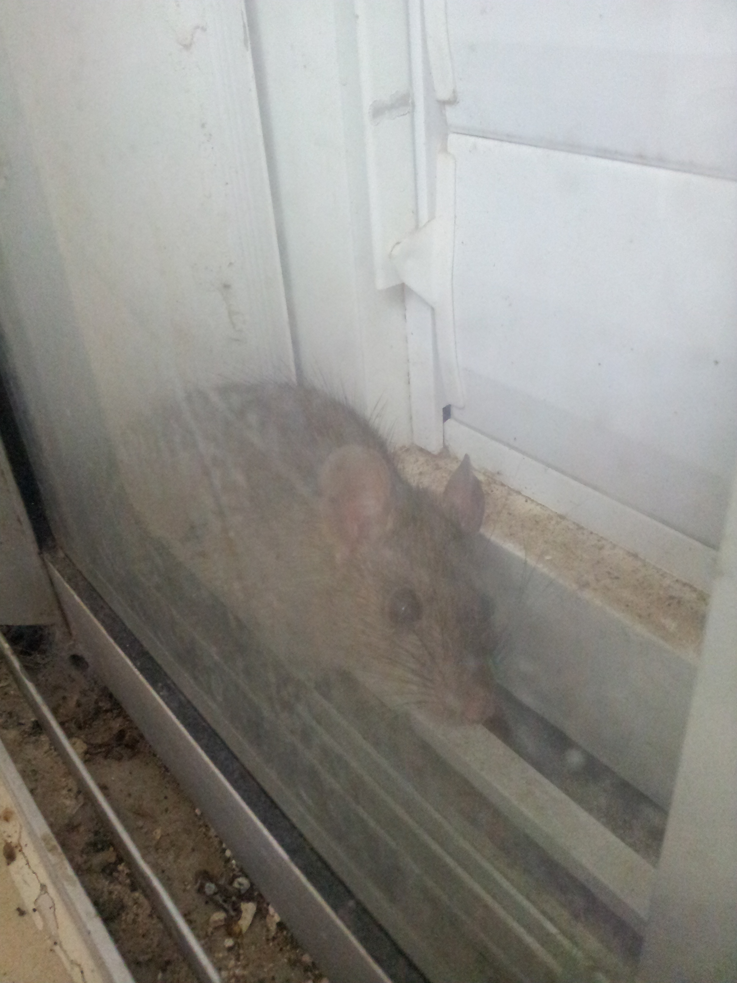 Какая радость! Пришла с работы и вижу между окном и ставнями на балконе.....крысу