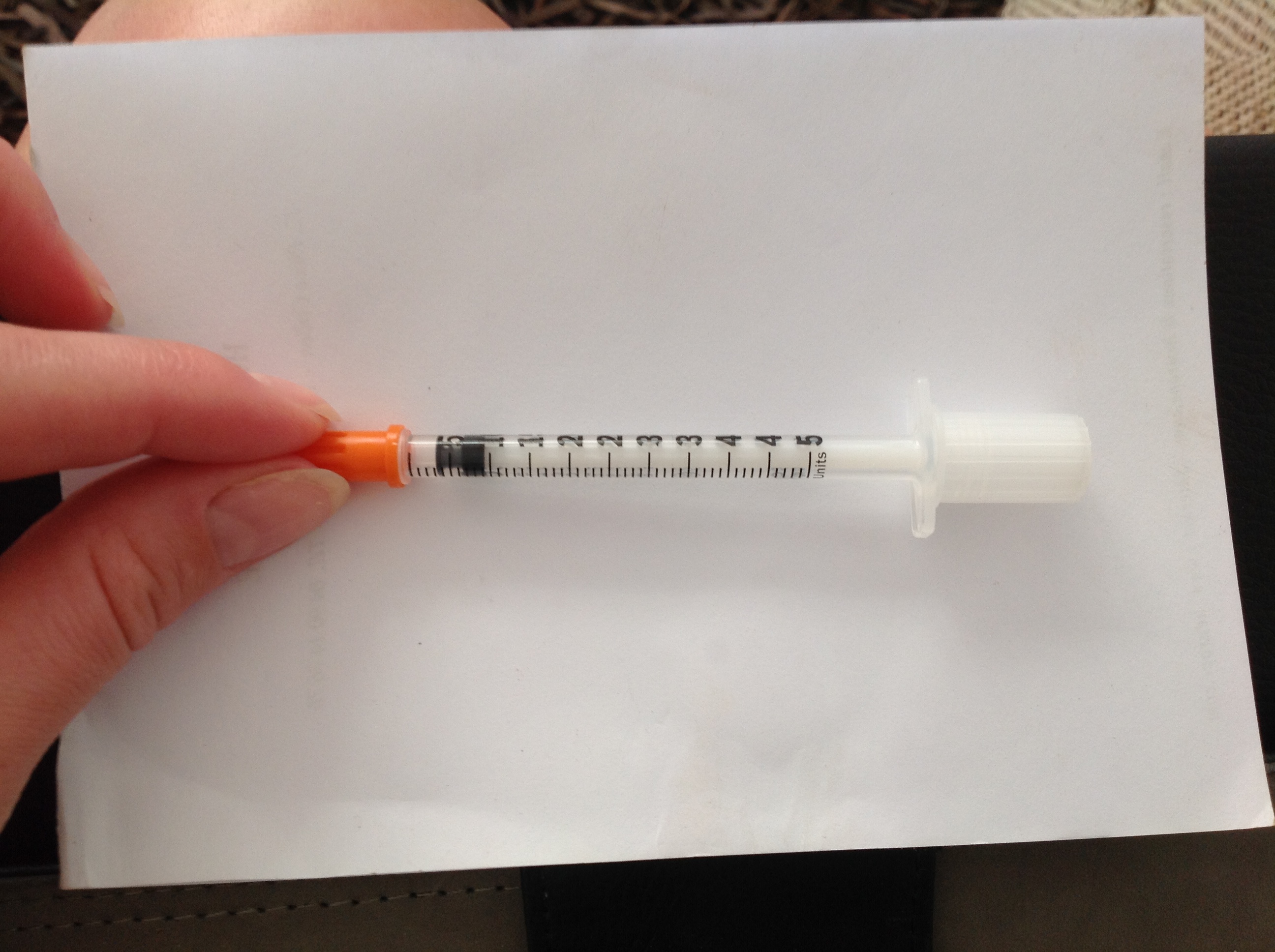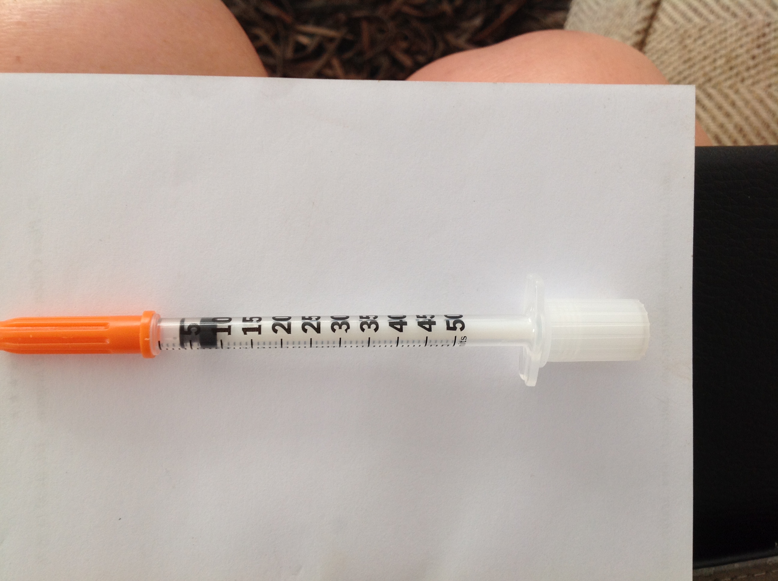 Это шприц с делением по 0,01мл. В него нужно набирать 10 делений, до отметки 10. Только иглу обязательно срежьте ножницами.