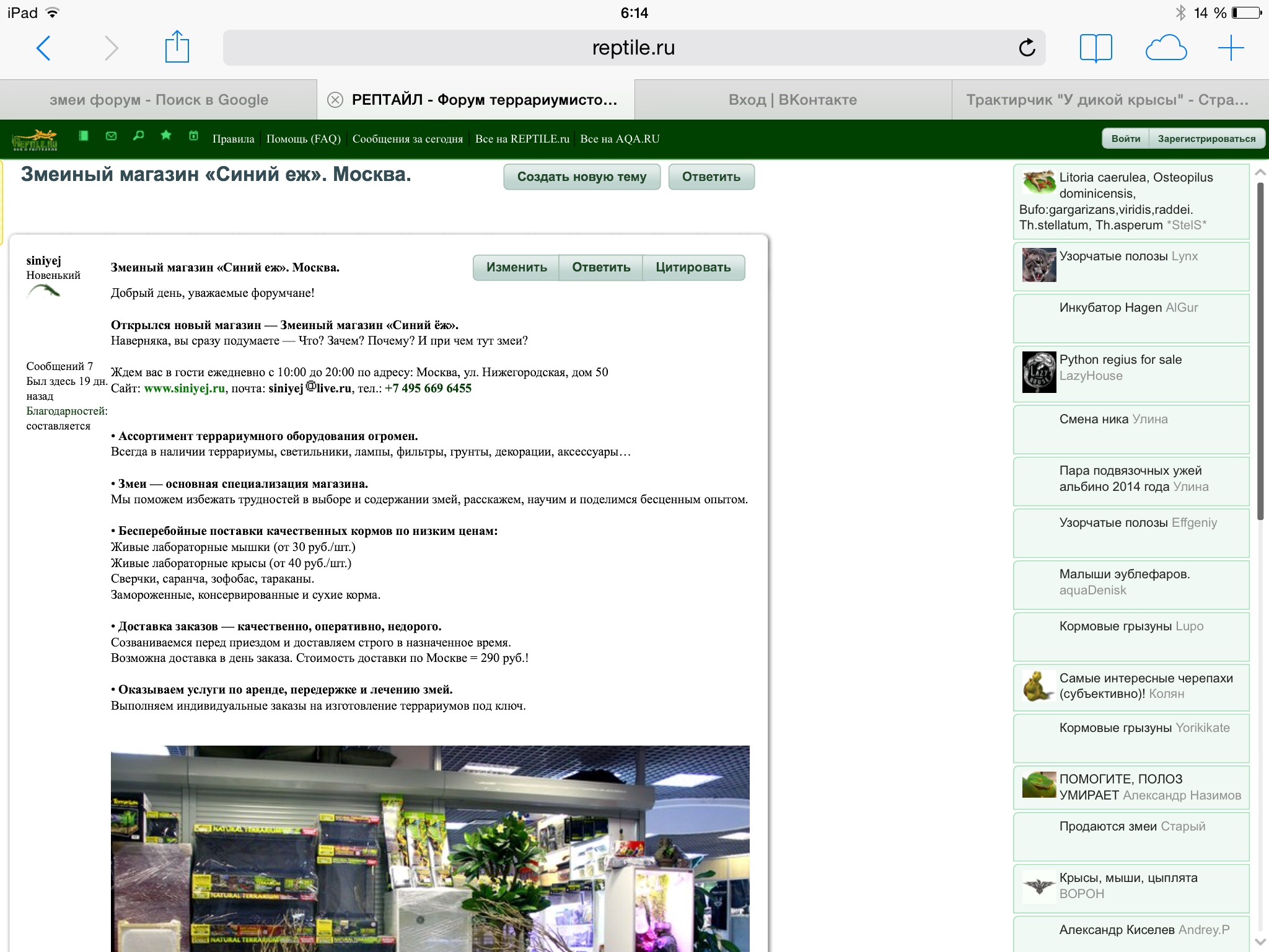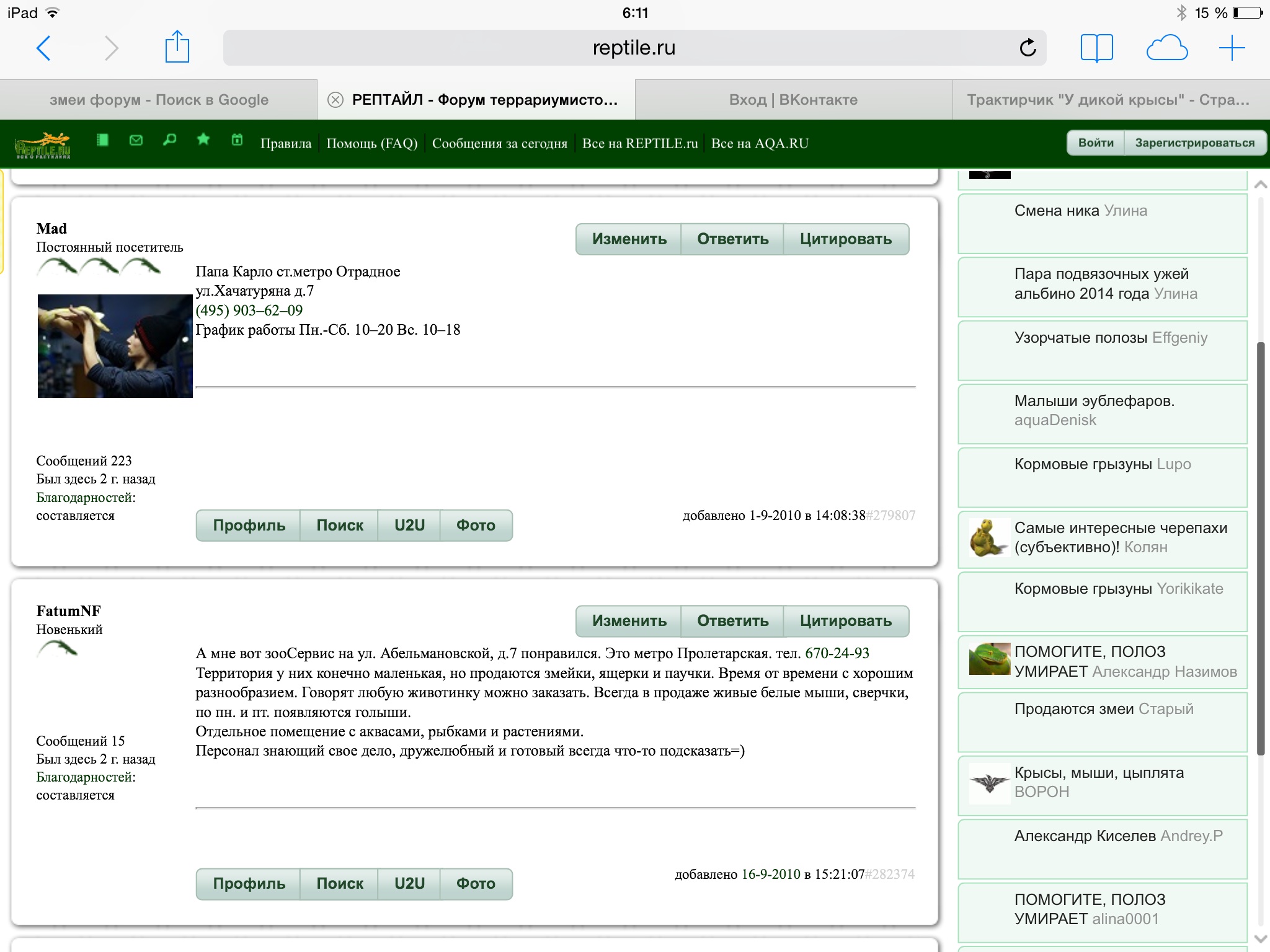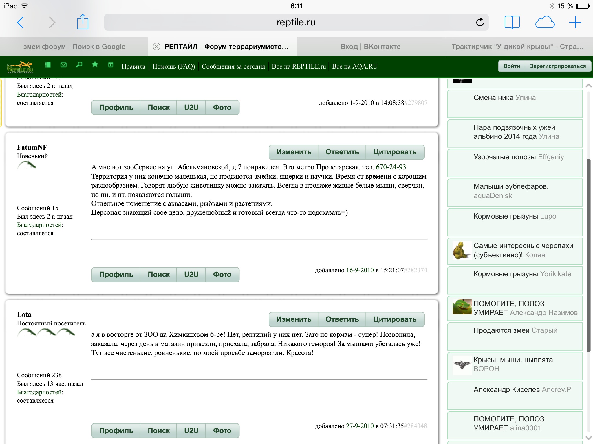 Позже я вам могу выслать фото, с обсуждением змееводов - где они покупают грызунов
