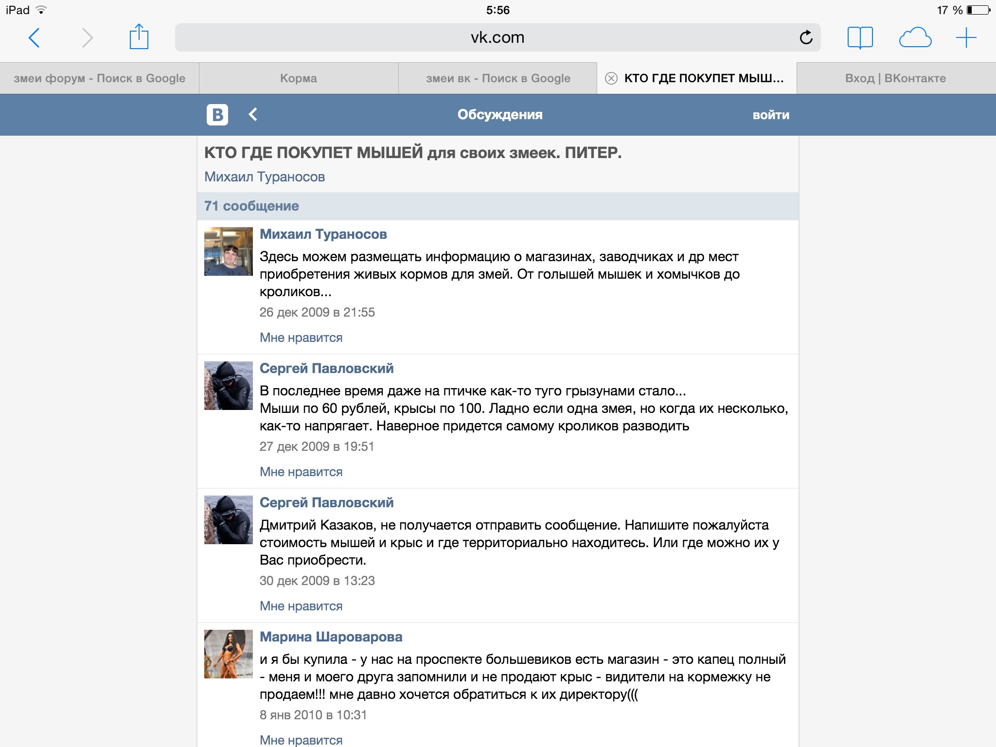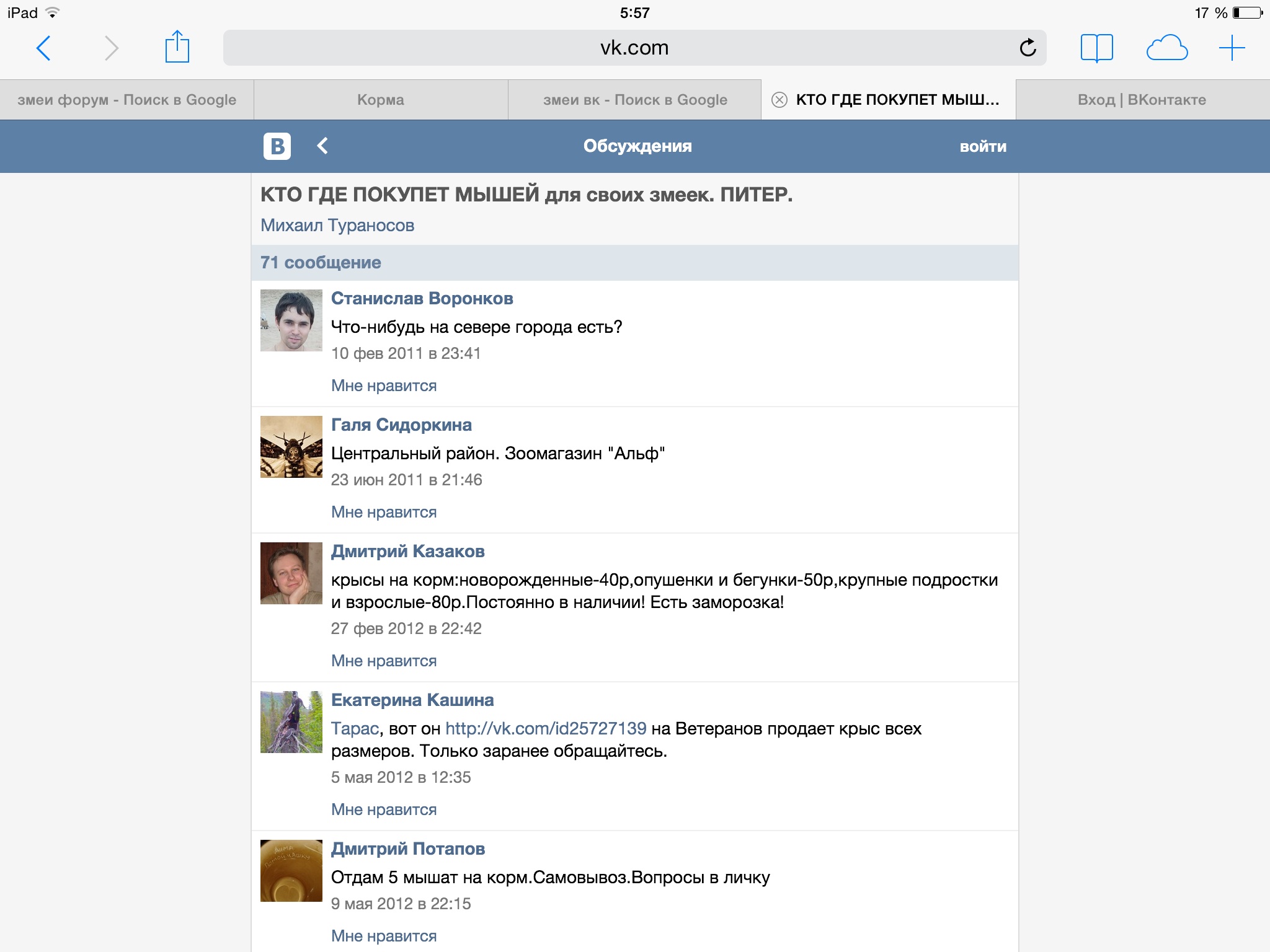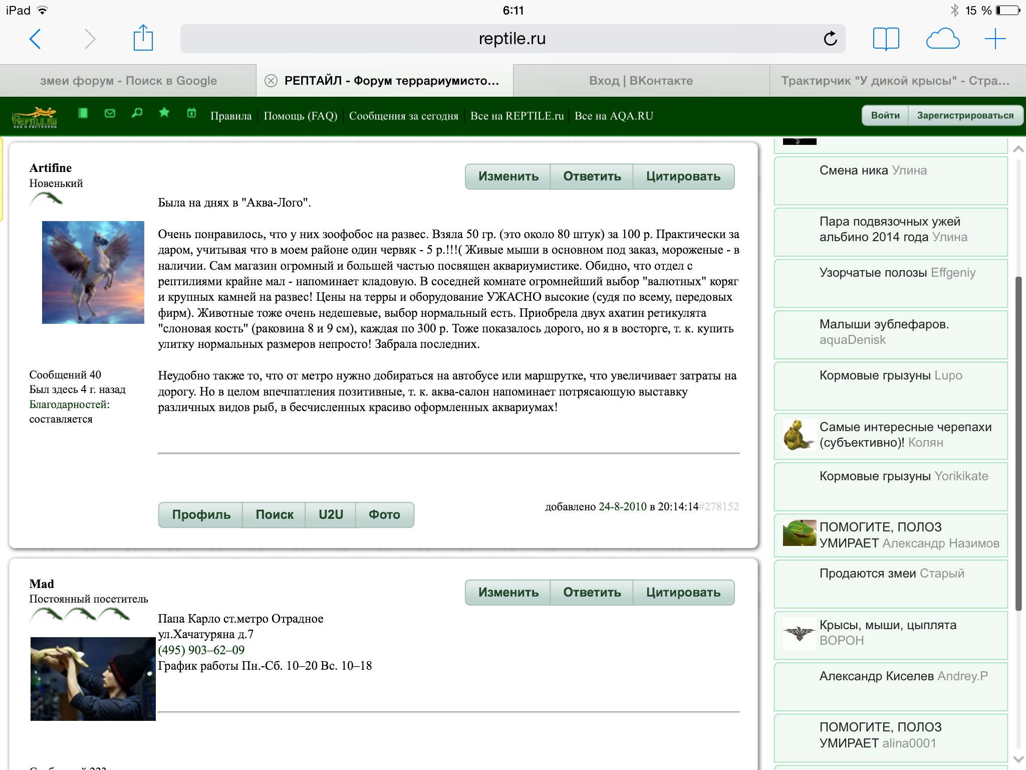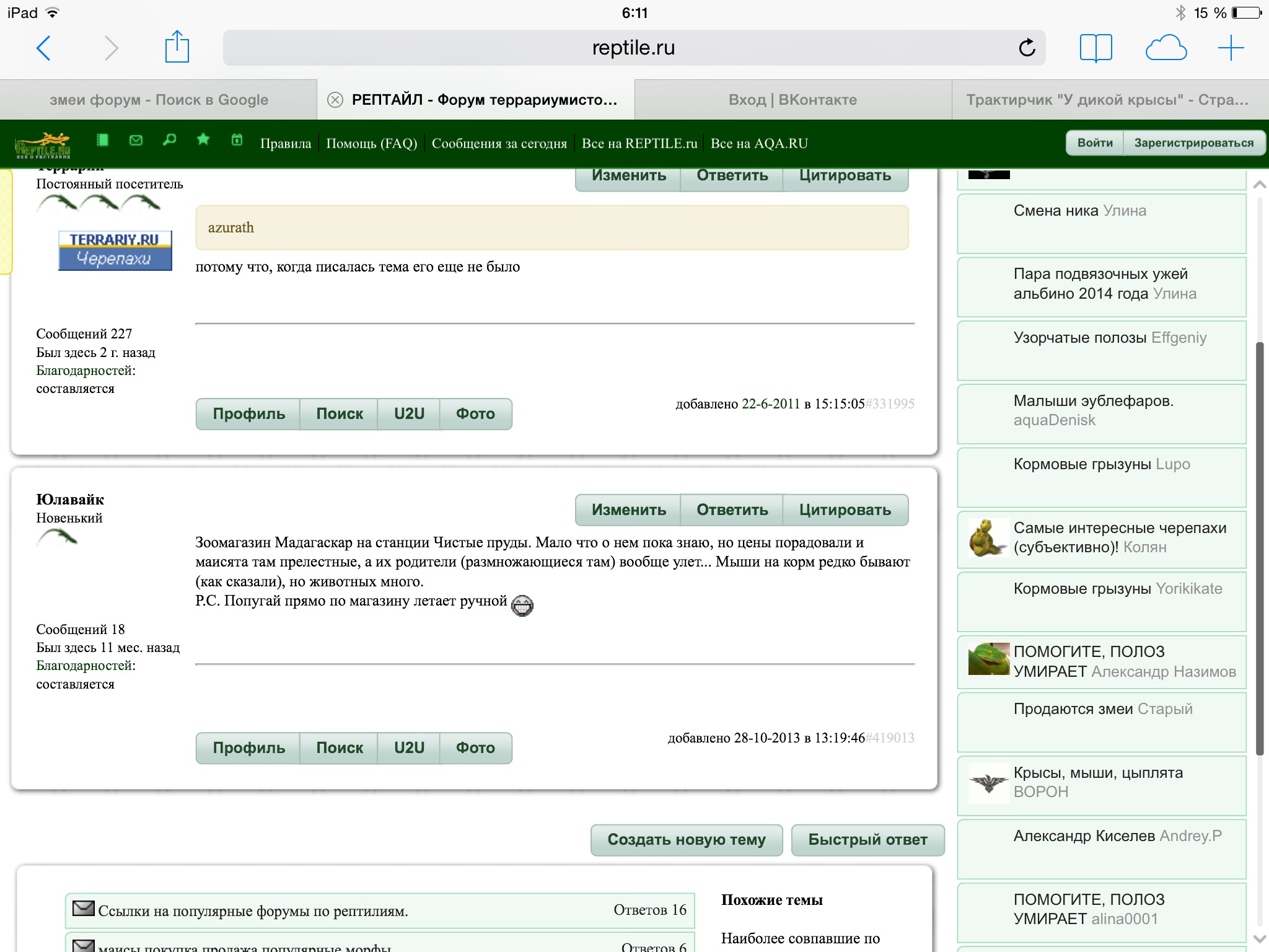 Позже я вам могу выслать фото, с обсуждением змееводов - где они покупают грызунов