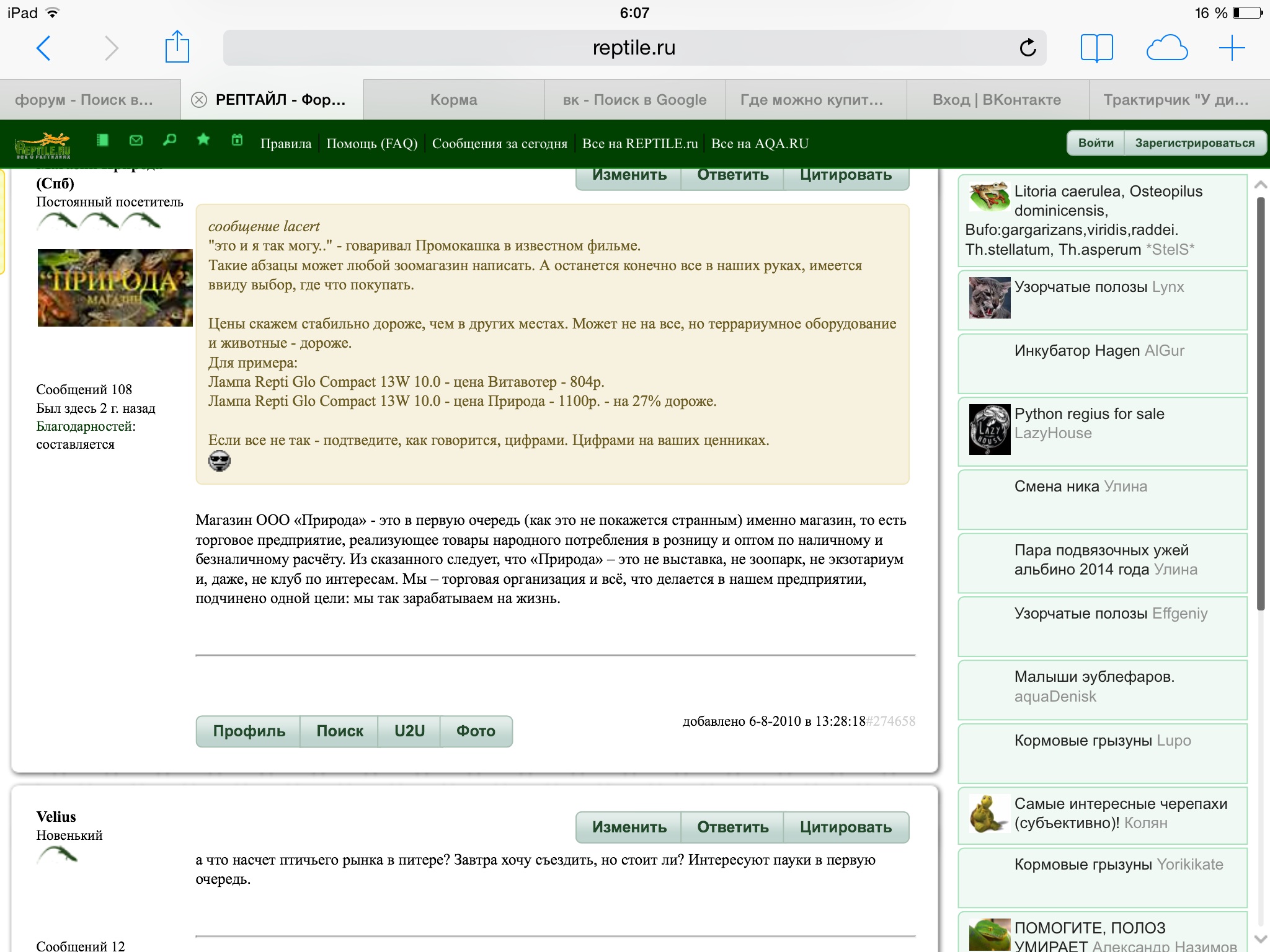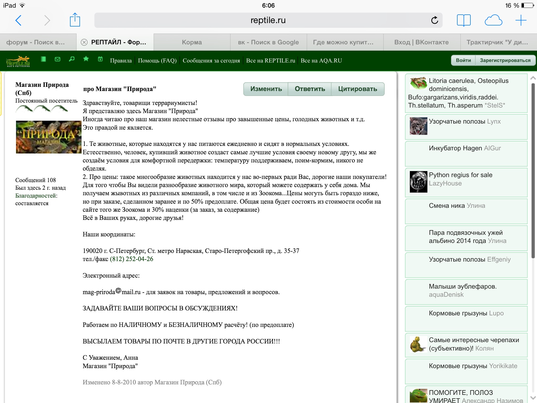 Глисты - на столько глупы! Они на рептайле сами указывают зоомагазины, где покупают - всё Снейкозатор начинается!