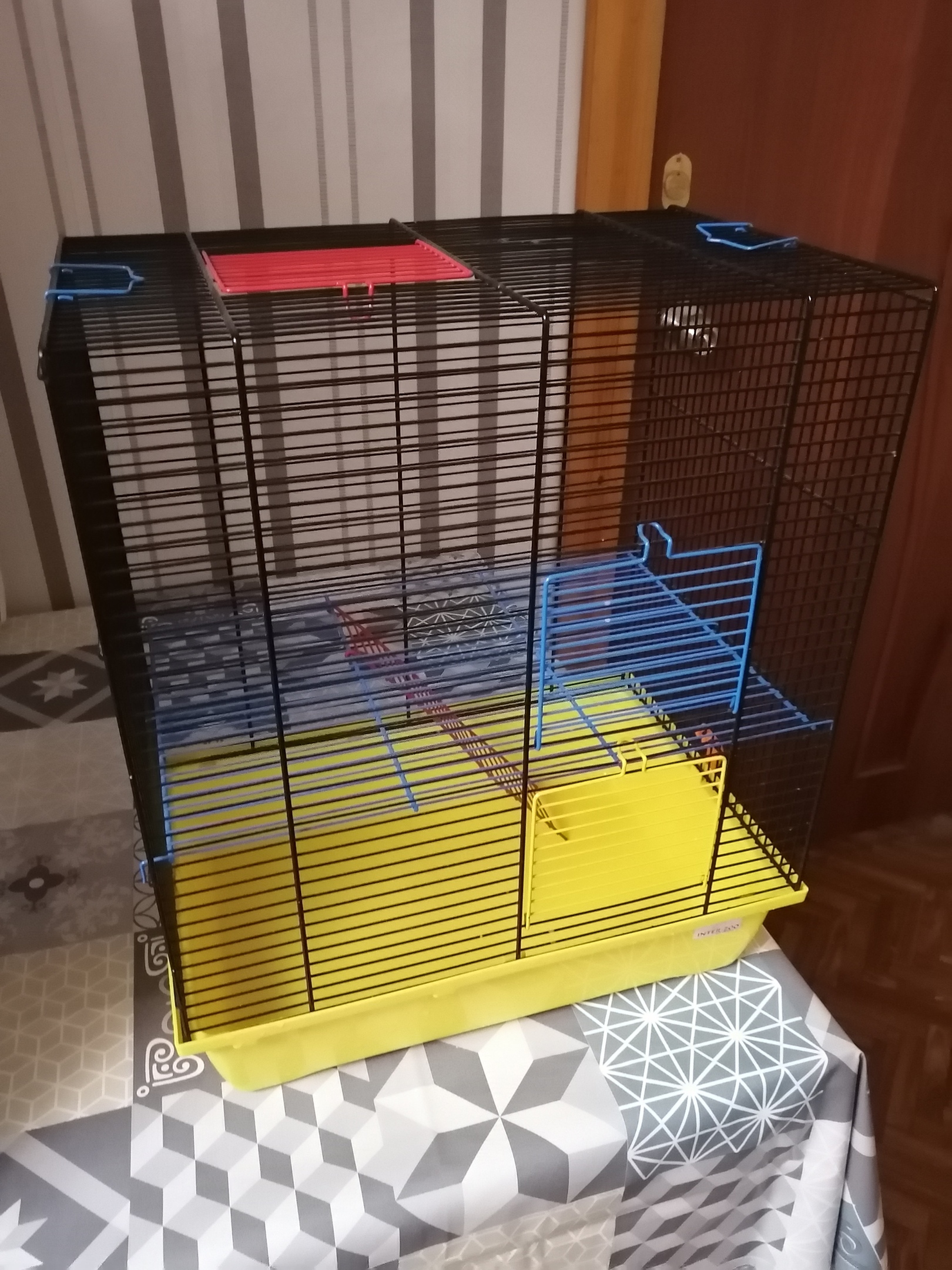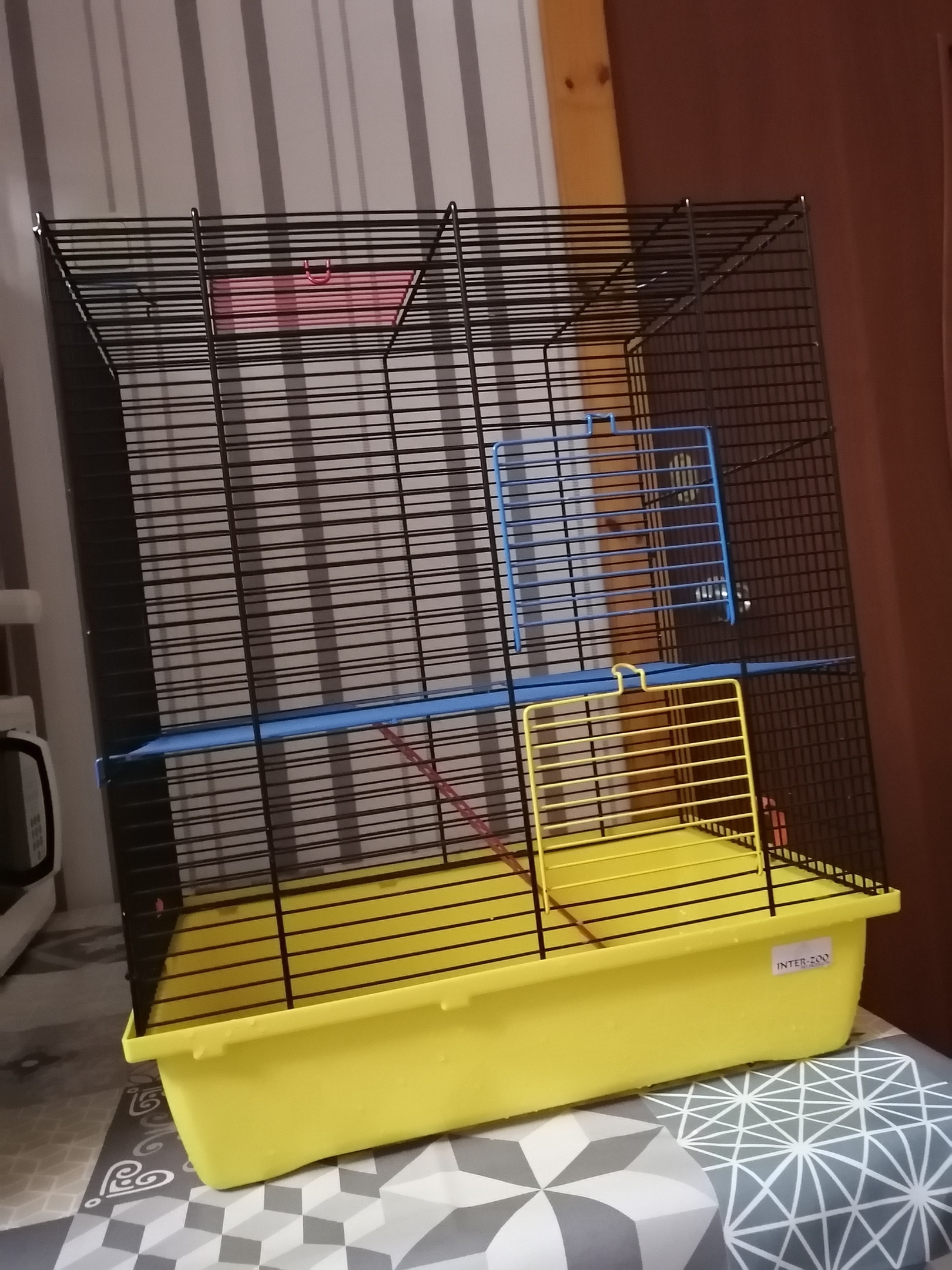 Клетка в хорошем состоянии, в нескольких местах на прутьях слезла краска. 1500 руб, уместный торг. Причина продажи -- купил более просторную клетку.
