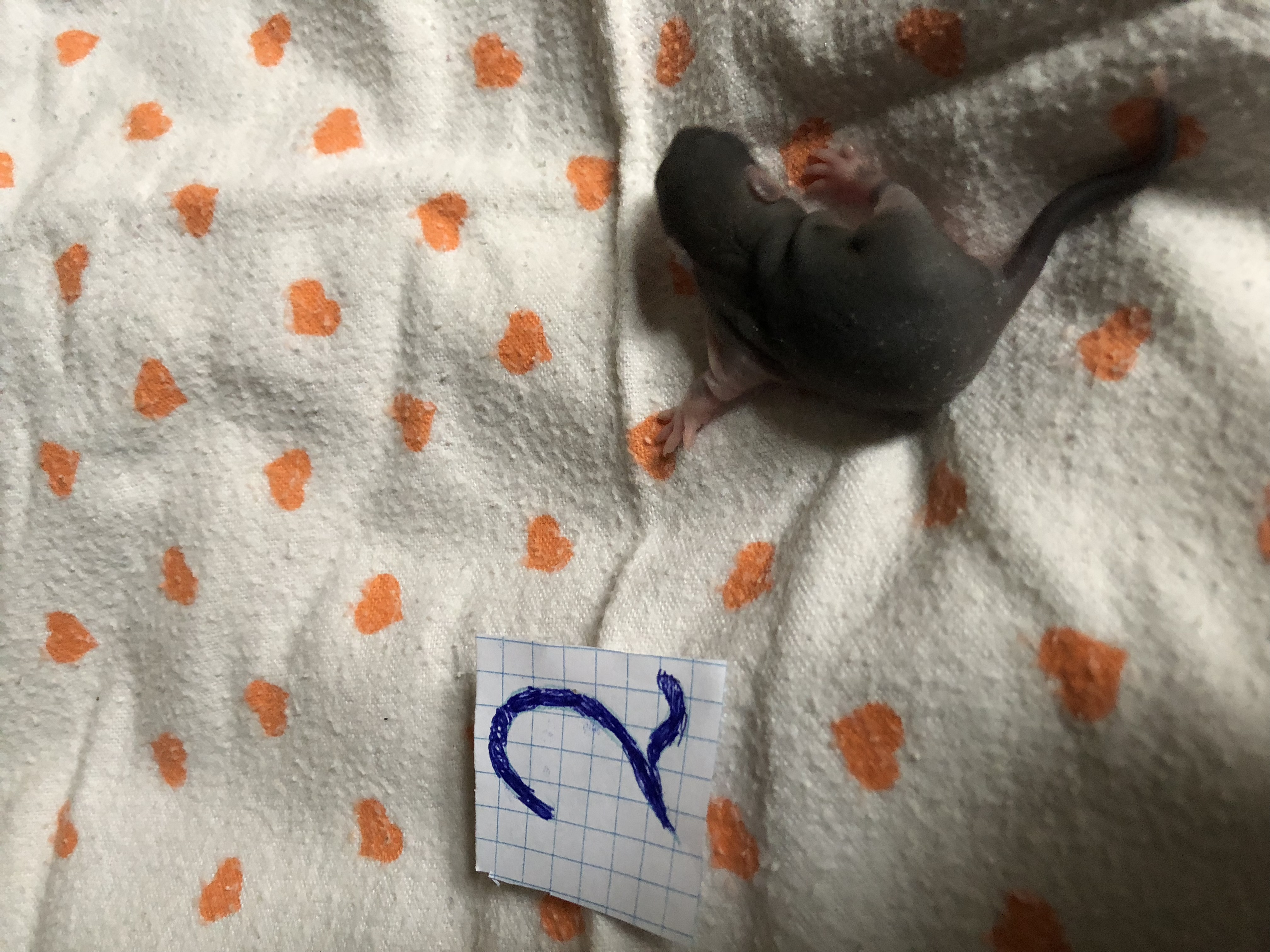 А если отличий нет, то на хвостиках рисуют полосочки, точечки в разном порядке, чтобы можно было идентифицировать каждого крысенка в соответствии с его фото (зеленкой, фукорцином или маркером несмываемым).
