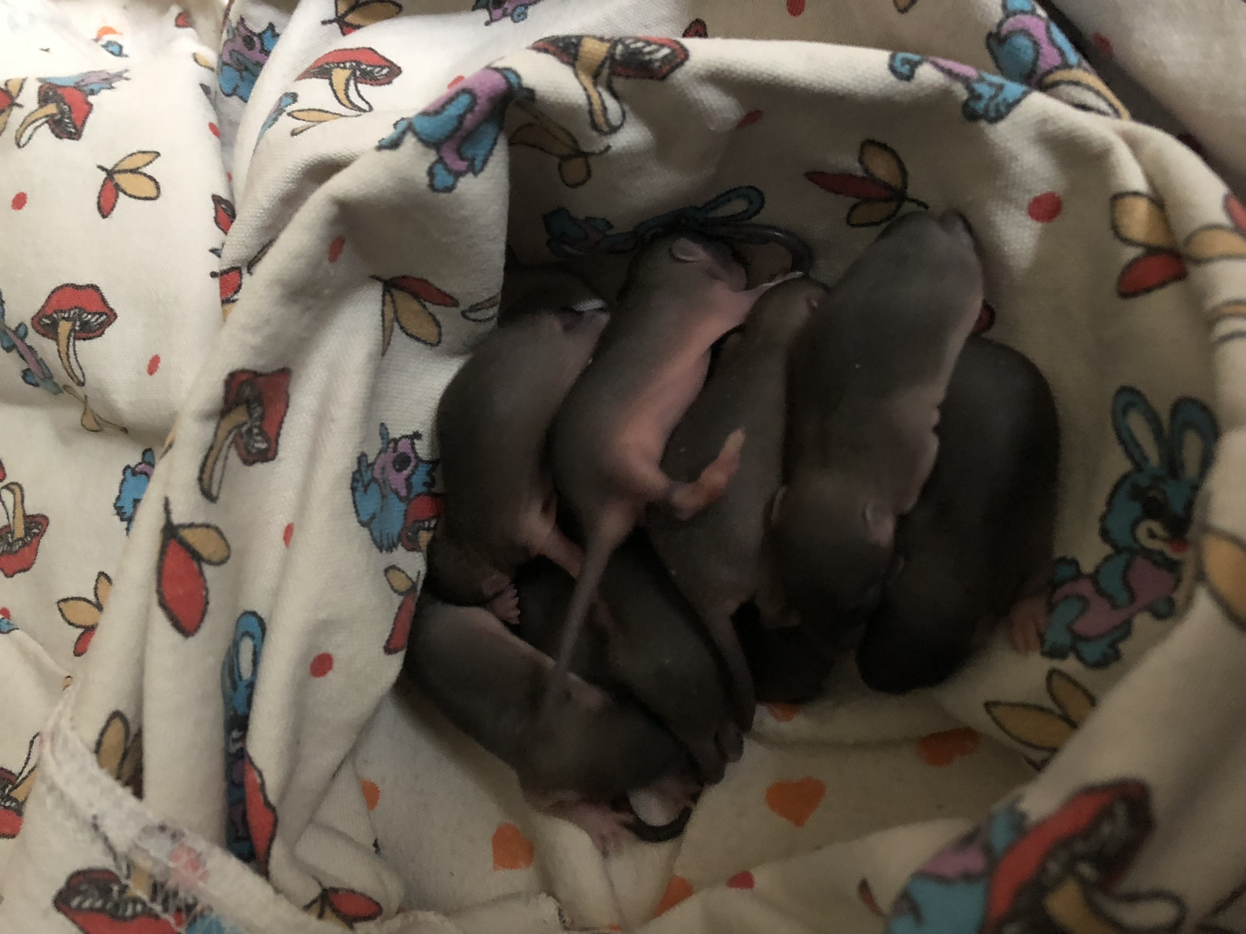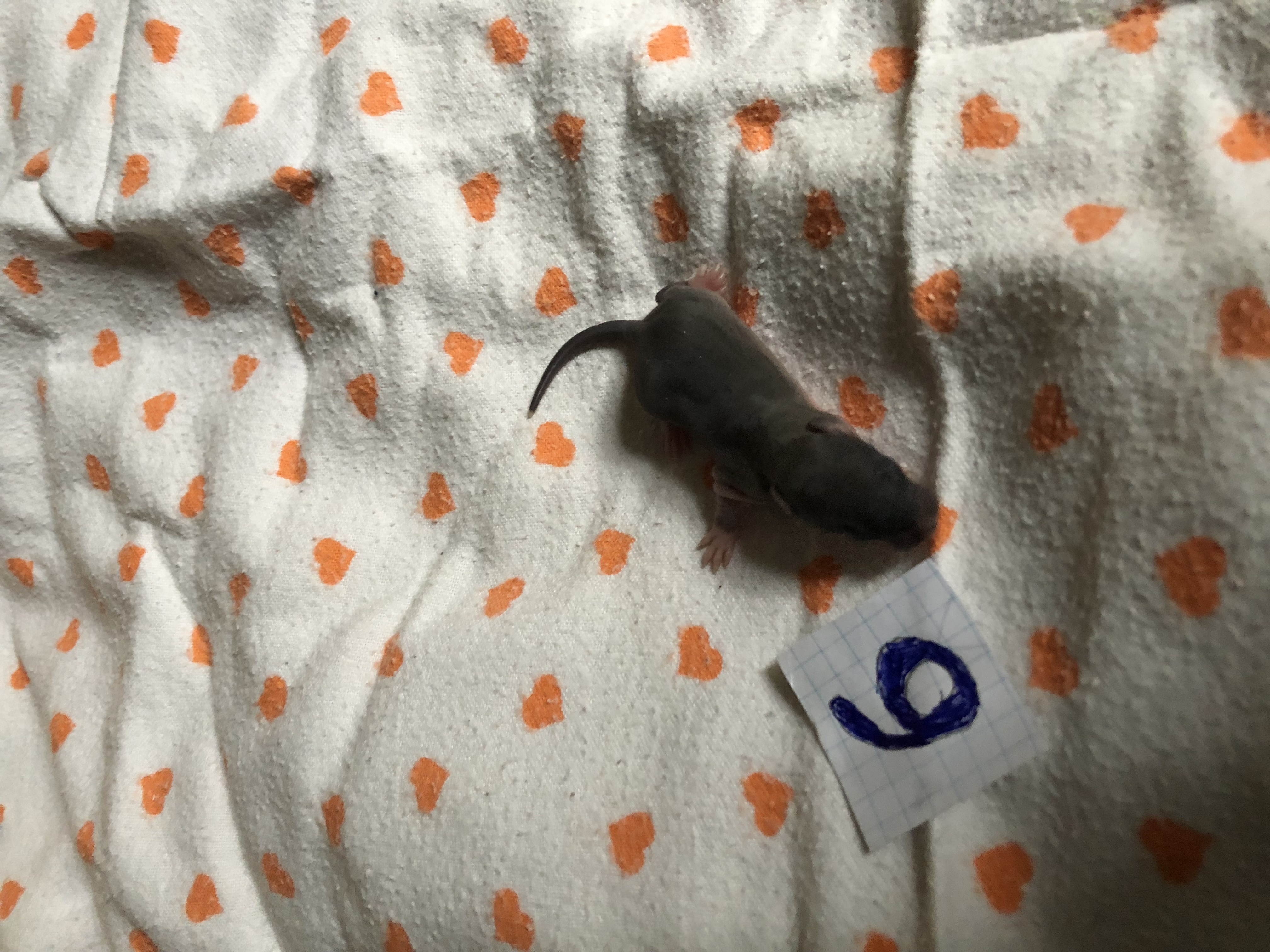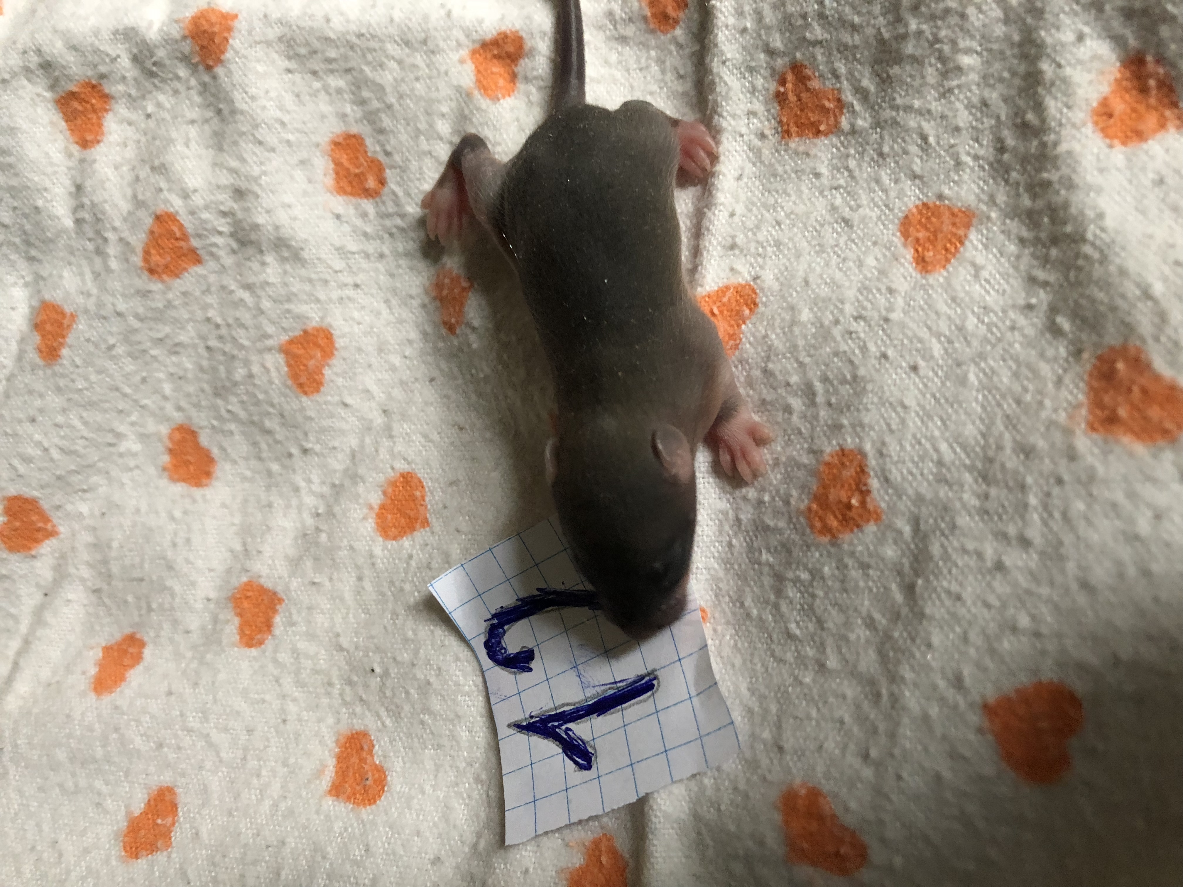 Посмотрите внимательно на животик каждого крысенка. Сейчас очень хорошо видно у кого есть соски, а у кого их нет. У девочек есть соски, у мальчиков нет.