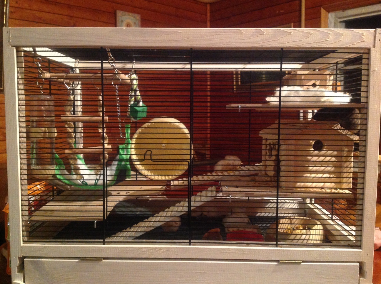 Вчера я купила для него специально клетку .. С домиком, лесенками и даже гамаком ! Не знаю подходит она или нет .. Могу и хочу выложить фото .. И возможно кто нибудь поможет определить его пол?