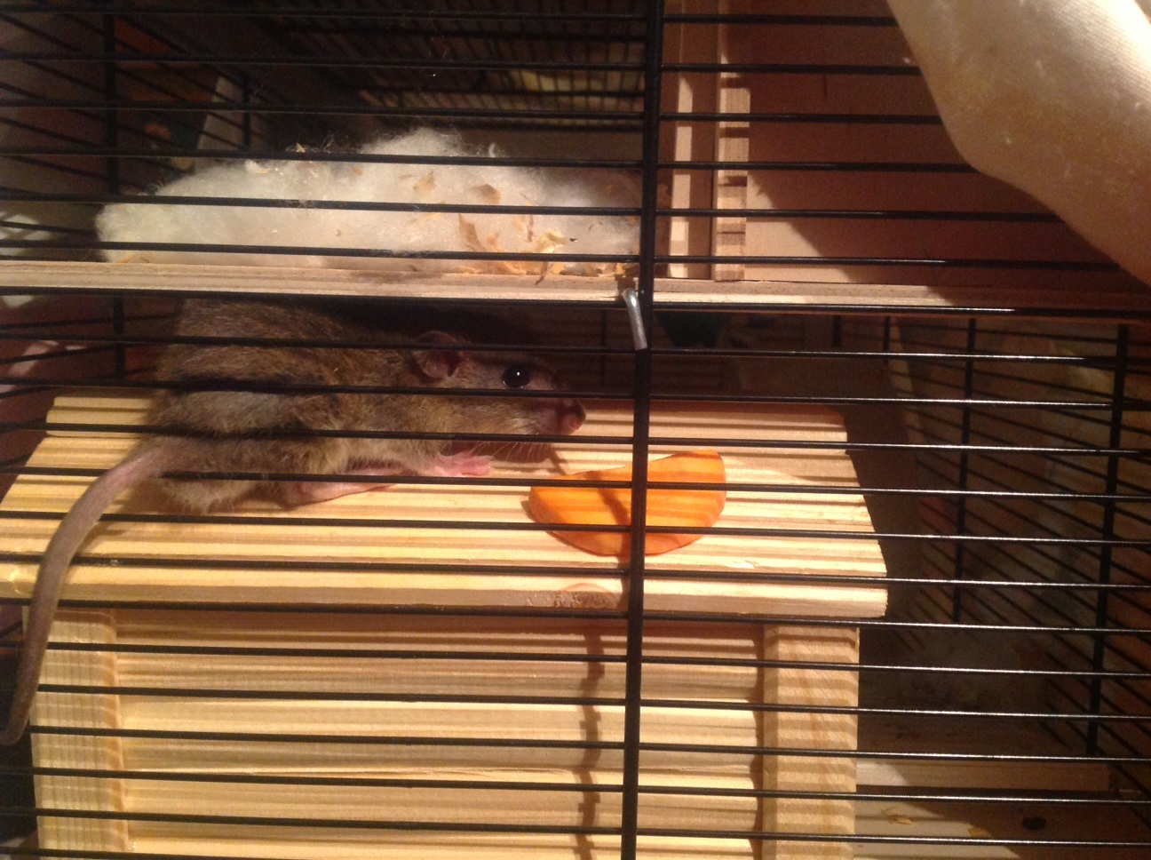 Мы поселили его в аквариум и несколько дней жил он там , собственно он видно совсем оклемался от шока тк прийдя и взяв его в руку он не сопротивлялся а просто обкакался и описался прямо в руке через пару секунд ! Вернула его в клетку ! Короче живя там неделю он видно совсем одичал или оклемался .. Не знаю .. Опыта в общении с крысами вообще никакого! Ни с декорашками ни с пасюками