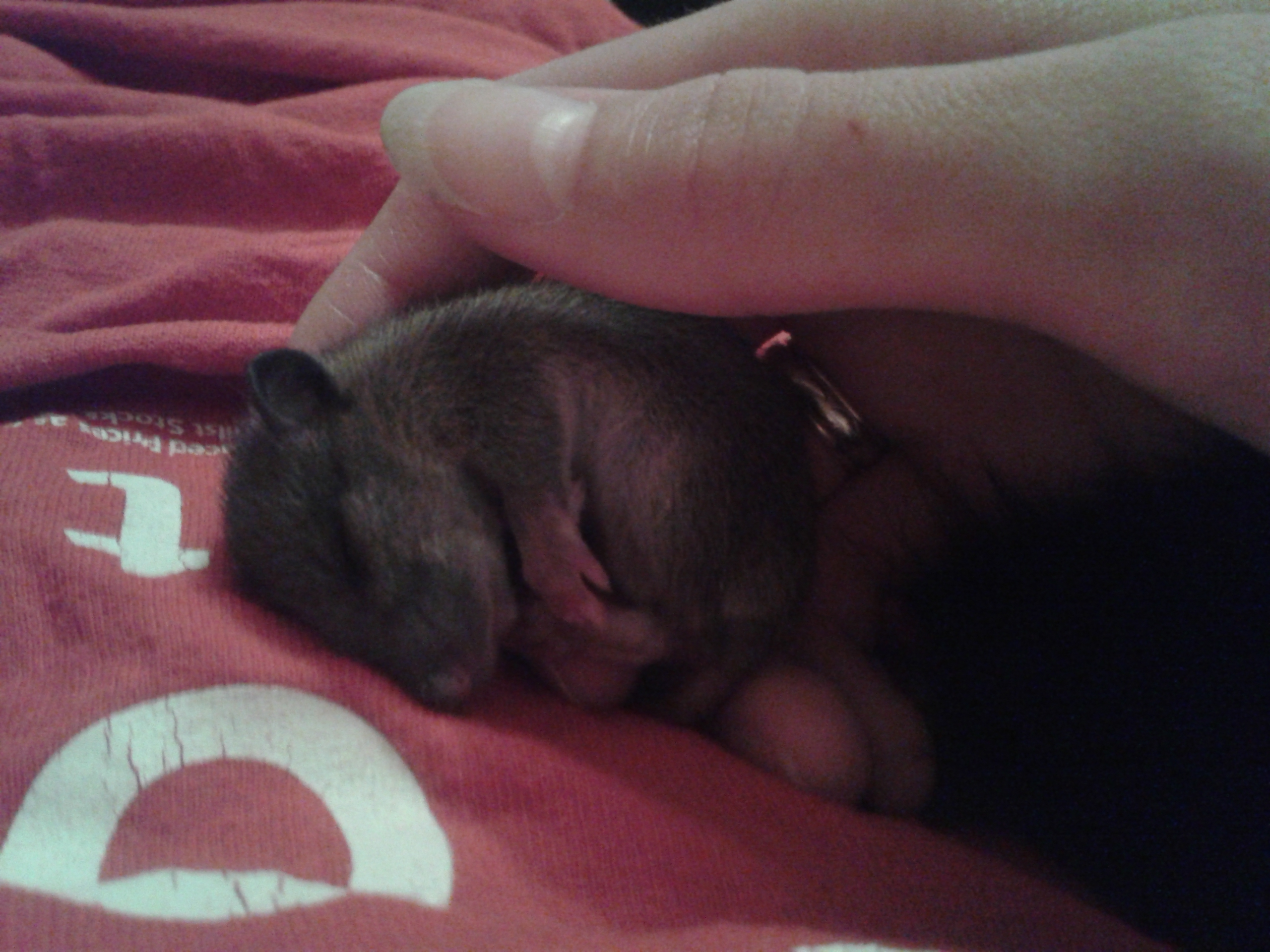 Мой медвежонок спокойно сидел на руке,не пытался удрать и даже не ругался. Я была настроена на совершенно дикого зверя,а тут он. Такой трогательный,беззащитный и совсем не похожий на крысу. Крошечный кенгуру или минимедвежонок. Остальные дети заметно нервничали, были против этих огромных,незнакомых гадких рук. Правда был один малыш,который тоже как-то спокойно и вдумчиво остался сидеть в руке. Но в какой-то момент он задрожал ,и я положила его обратно в очаровательно пищащий клубок медвежат.Снова взяла в руку моего мальчика,который случайно и был взят самым первым на руку. Он дал себя рассмотреть,пощупать, погладить и даже начал лизать мне палец, а потом с невероятно серьезным видам начал пытаться умываться,динамично раскачиваясь из стороны в сторону. Мы поехали домой. Боже,дорога домой казалась невероятным путешествием, таким долгим и громким. Казалось то мне,но уверенна, мой малыш был со мной солидарен!