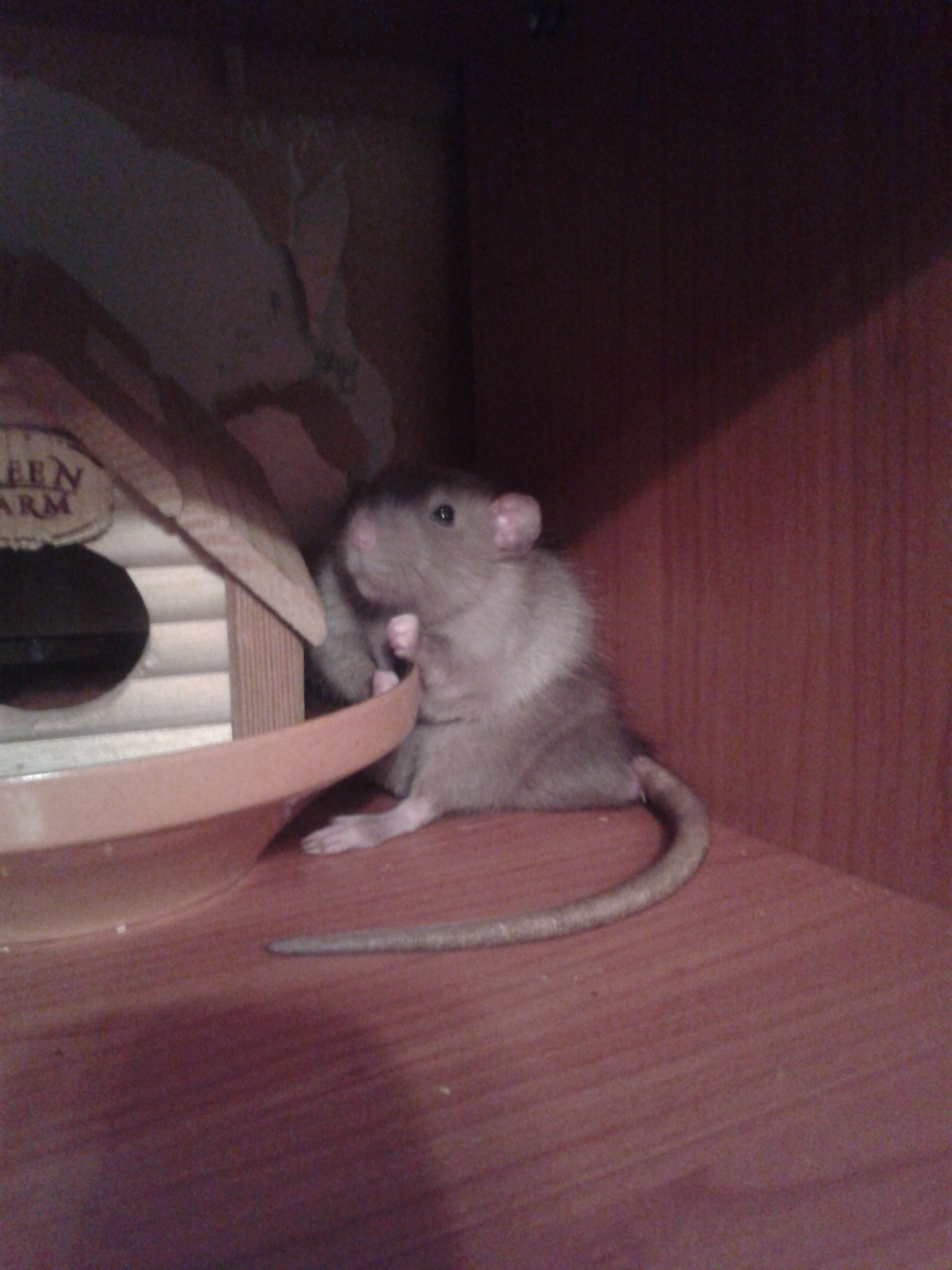 Мы дома. Оформлена клетка,разведена кашка,но Нильс совсем отказывается сидеть за решеткой. Залезает по шприцу на руку и и счастливо бежит на плечо. И так по кругу. В итоге, ну ее клетку..он почти жил на мне. Ел,какал,писал, спал,играл,дрался. На ночь все же приходилось пихать его насильно в "дом", тут же раздавалась дробь зубами по прутьям; "ну-ка..бы-стро..дос-та-ла...кры-са..ну-ка..сей-час-жееее". Ночью вставала каждые 3 часа, чтобы заварить новую смесь,и это невероятное существо с обиженным видом встречало меня непосредственно у дверки и моментально вспрыгивало мне на руку,и ну как тут быть..Мой организм понял меня и быстро заболел,устроил мне околокрысиный отдых,так сказать. Мне было очень плохо.и жутко хорошо одновременно. Я не могла выйти из дома(что не сильно меня огорчало),и вместе с тем не отходила от Нильса днями напролет.