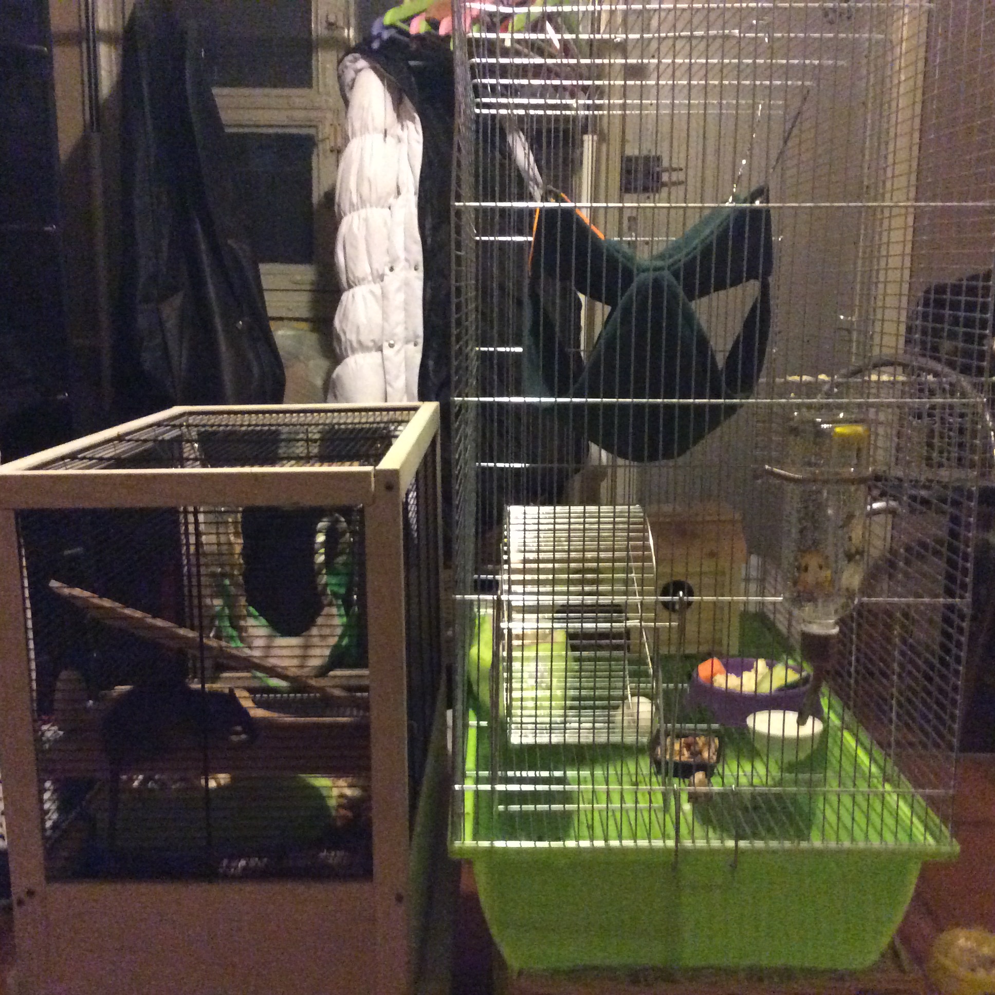 Клетки поставили рядышком потому,что крыс уже который день и до сих пор пребывает в ауте и переживаниях , что его отделили от его жены с детьми - реально обиделся и как бы дико это не звучало НО он реально отворачивается и даже убегает на противоположную сторону клетки а также даже убирает лапку когда начинаешь гладить Ее через сетку а раньше позволял :О лежит тряпочкой на полке и ничто на белом свете ему не мило ... бедняга