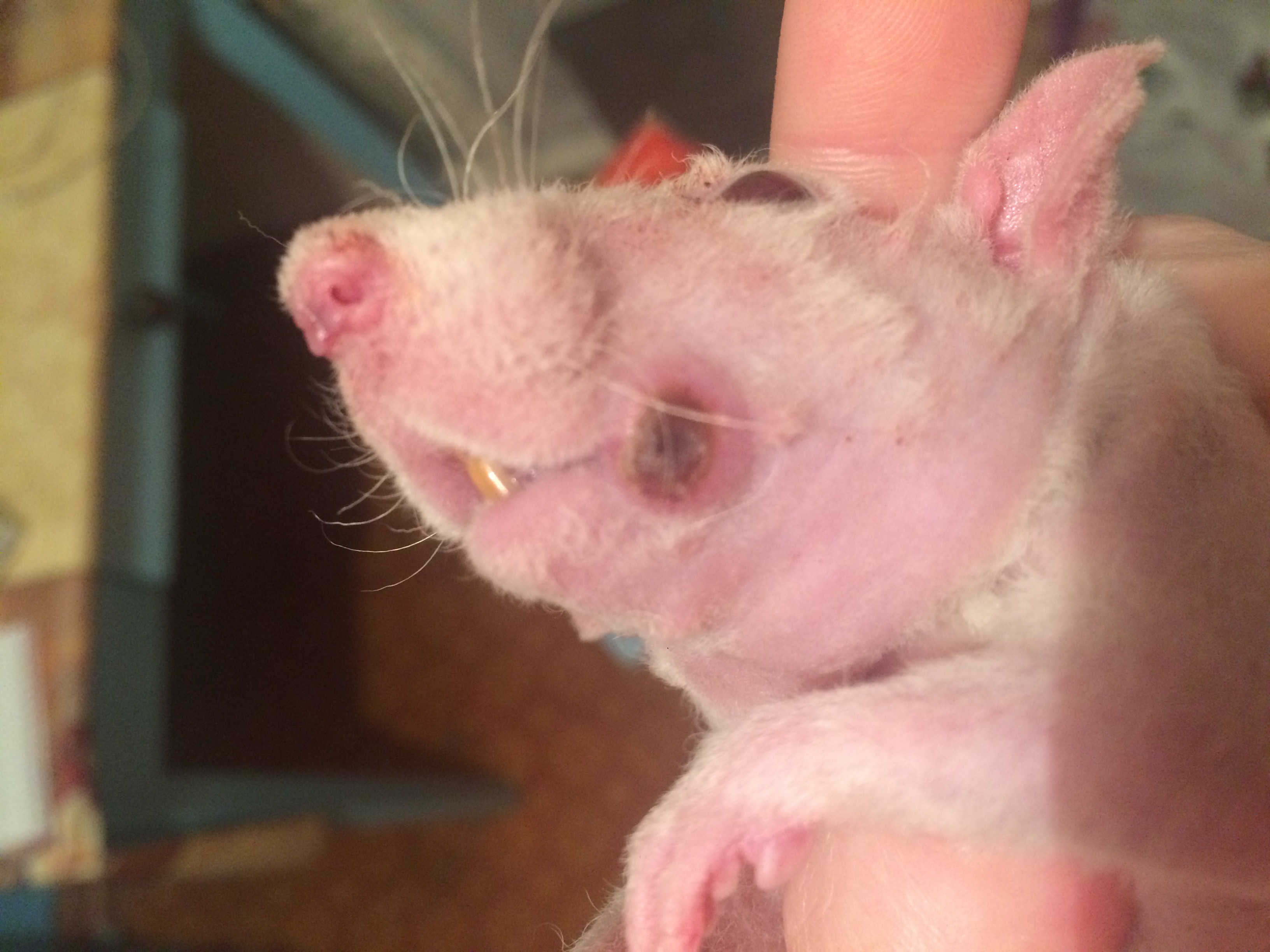 jul4ips, да, наверное, дырочка небольшая и чистая внутри. Но на морде же опасны абсцессы, да ещё и я новичок в этом. Крупных животных легче лечить, чем маленькую крысу, она, бедная вырывалась и визжала сначала, а потом смирилась. Я её сегодня уже четыре раза обрабатывала, до ночи ещё раза три сделаю. Жалкая моя лысенька