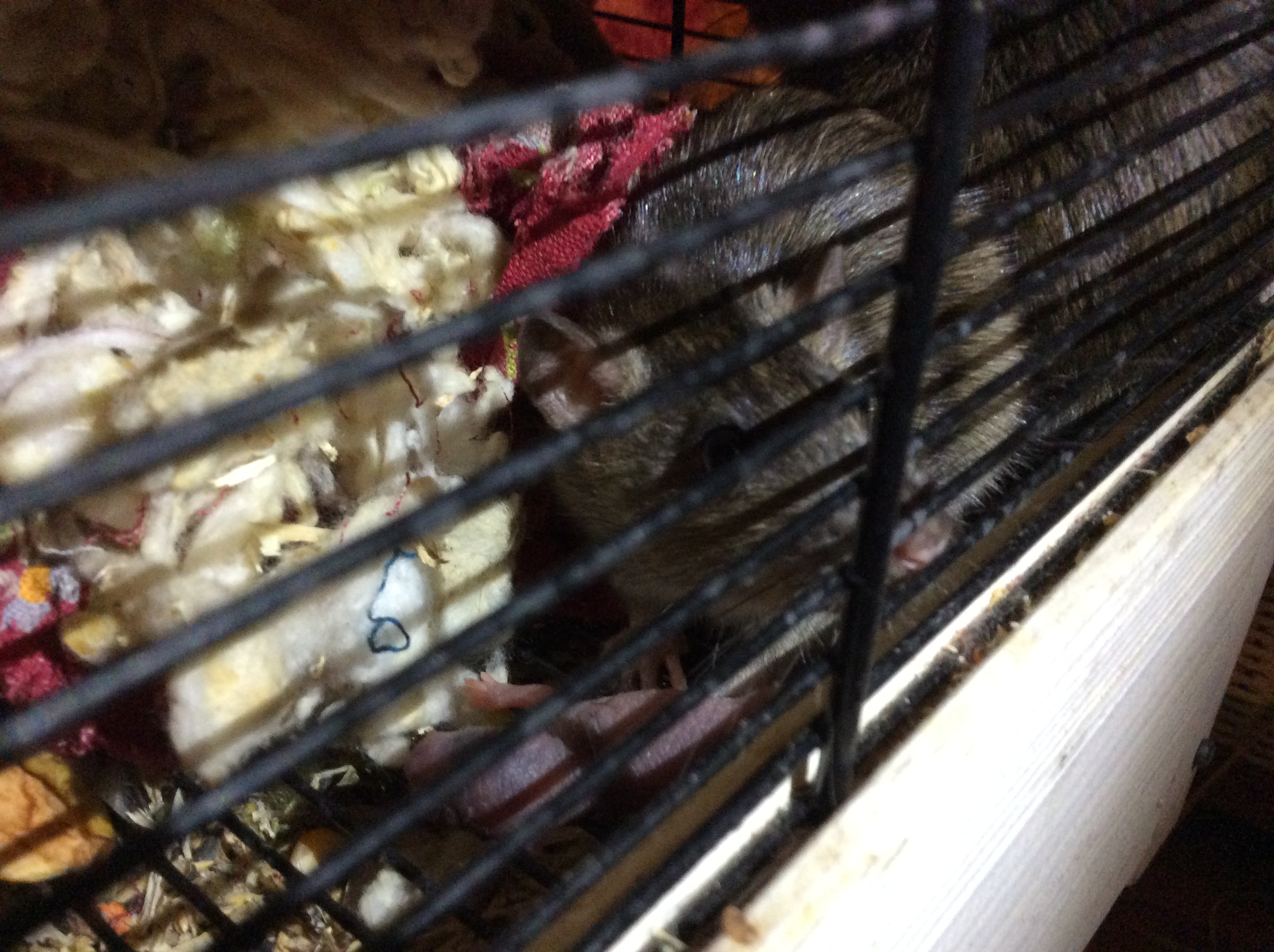 Вот фотографии крыс она сидит отгородившись всякими тряпками шерстяными носками и самец с ней рядом же сидит и под ней эти мальки не видно сколько но 2 точно может 3 а может и 4