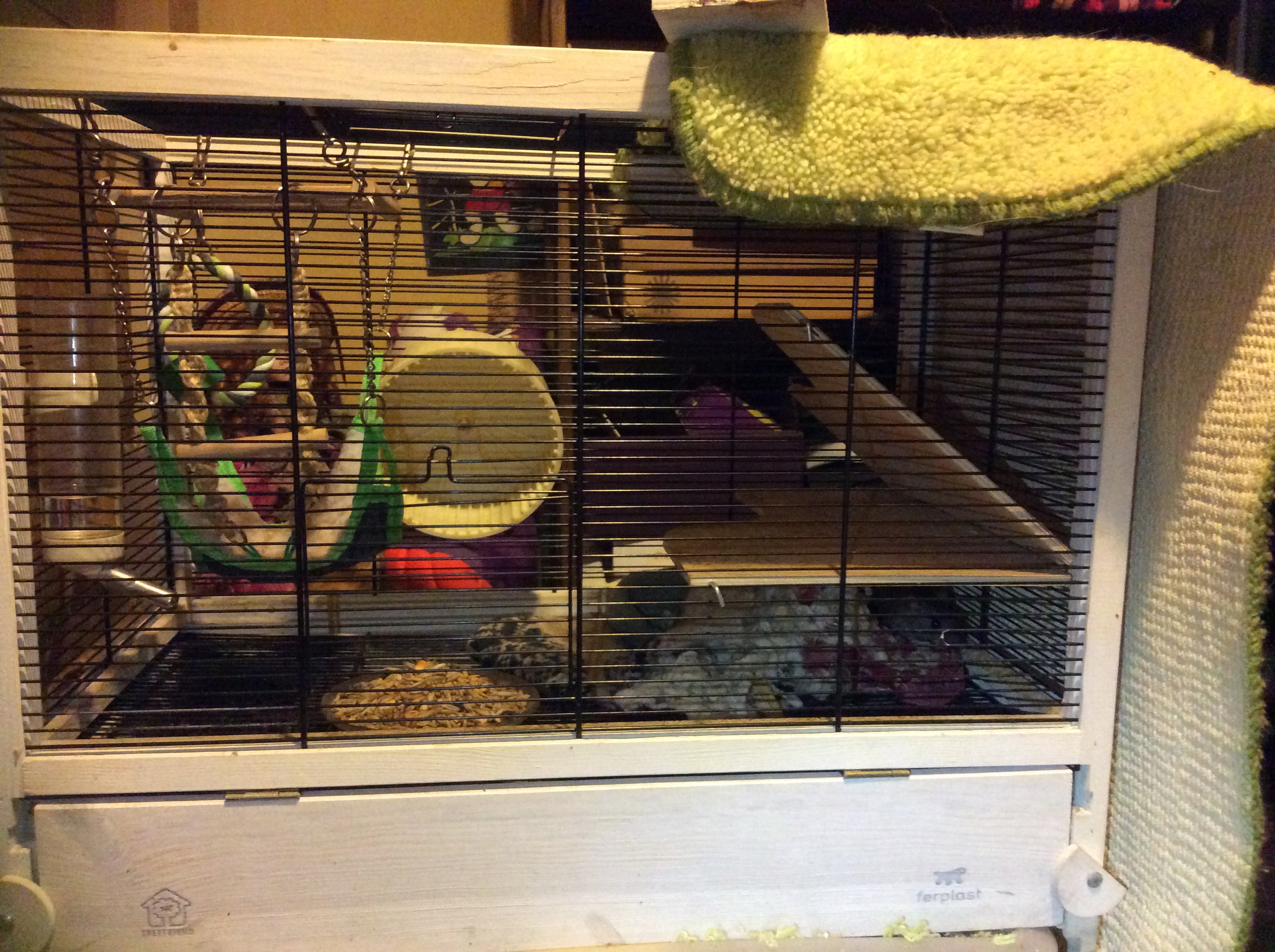 повесить им туда пару гамаков короче как то так.. но выпускать ей их просто некуда .. они же не вернутся обратно в клетку а просто спрячутся в печку или просто прогрызут тонель внутрь стен дома ну а у неё коты тоже есть .. позтому держит она из в отдельной комнате и в клетке за то кормит она их хорошо она полагала,что чем лито съеденными котами им по любому лучше в клетке и с постоянной едой .. но проблема теперь в том,что они разнополые и мы понимаем,что надо срочно отсаживать пасюка! Только вот что теперь за жизнь их ждёт по разные стороны в разных клетках им ведь скучно будет