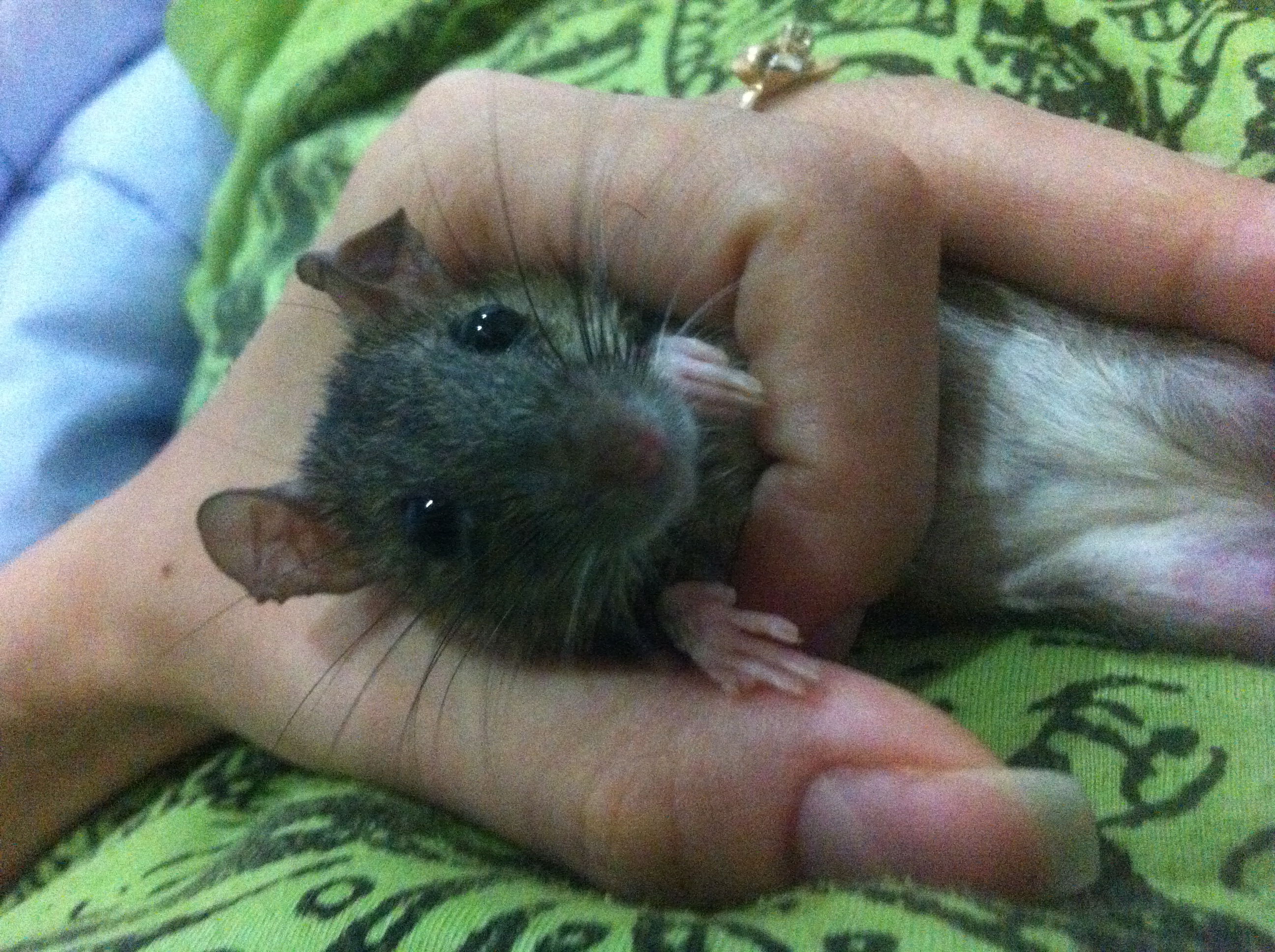 6 октября (долго собиралась написать), рано утром, я проснулась, услышав какую-то кошкину возню. Кошка поймала крысу. Крысу я отобрала. А у крыски уже конвульсии, сильные, толчками. Я прижала крыску к себе, и держала так, пока конвульсии не прекратились. Крыска затихла. Думала, умерла. Продолжаю держать, руки дрожат... И тут чувствую - ДЫШИТ!!! Еще немножко подержала, и аккуратно в руках начинаю смотреть, что с крыской. Прокушена передняя лапка, кровь. Задние лапки тряпочкой, не шевелятся... Попутно отмечаю, что крыска - мальчик, Фонин ровесник. И тут меня как огрели ведром с размаху. ФОНЯ!!!! Это же МОЙ ФОНЯ только что умирал у меня в руках!!!