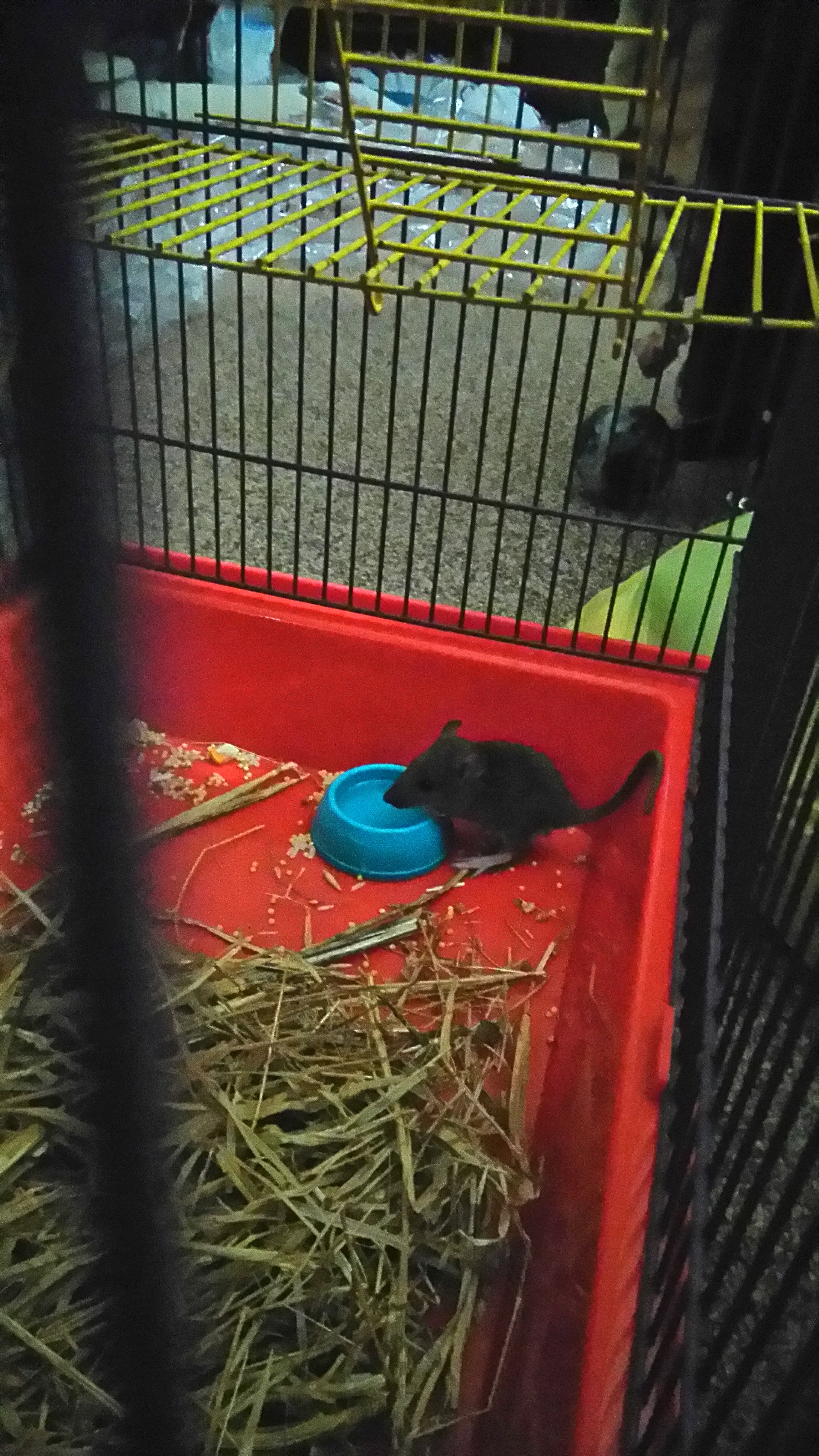 Здравствуйте. Сегодня отобрала у нашей кошки такого "кенгурёнка", я так понимаю это дикая крыска? Хотелось бы знать примерный возраст... Не смотря на весьма скромные размеры через полчаса после помещения в клетку вовсю грыз зерно и прочие вкусняшки наших декоративных мальчишек и обнюхивал пальцы. Я, конечно, оставлю этого малыша, где будет жить станет ясно, когда узнаем пол этого пятничного сюрприза)) Подозреваю, что он вывелся в нашем гараже или сарае, хранится сено и зерно для кур, так что дикие сородичи не голодают. Завтра займусь обустройством клетки.