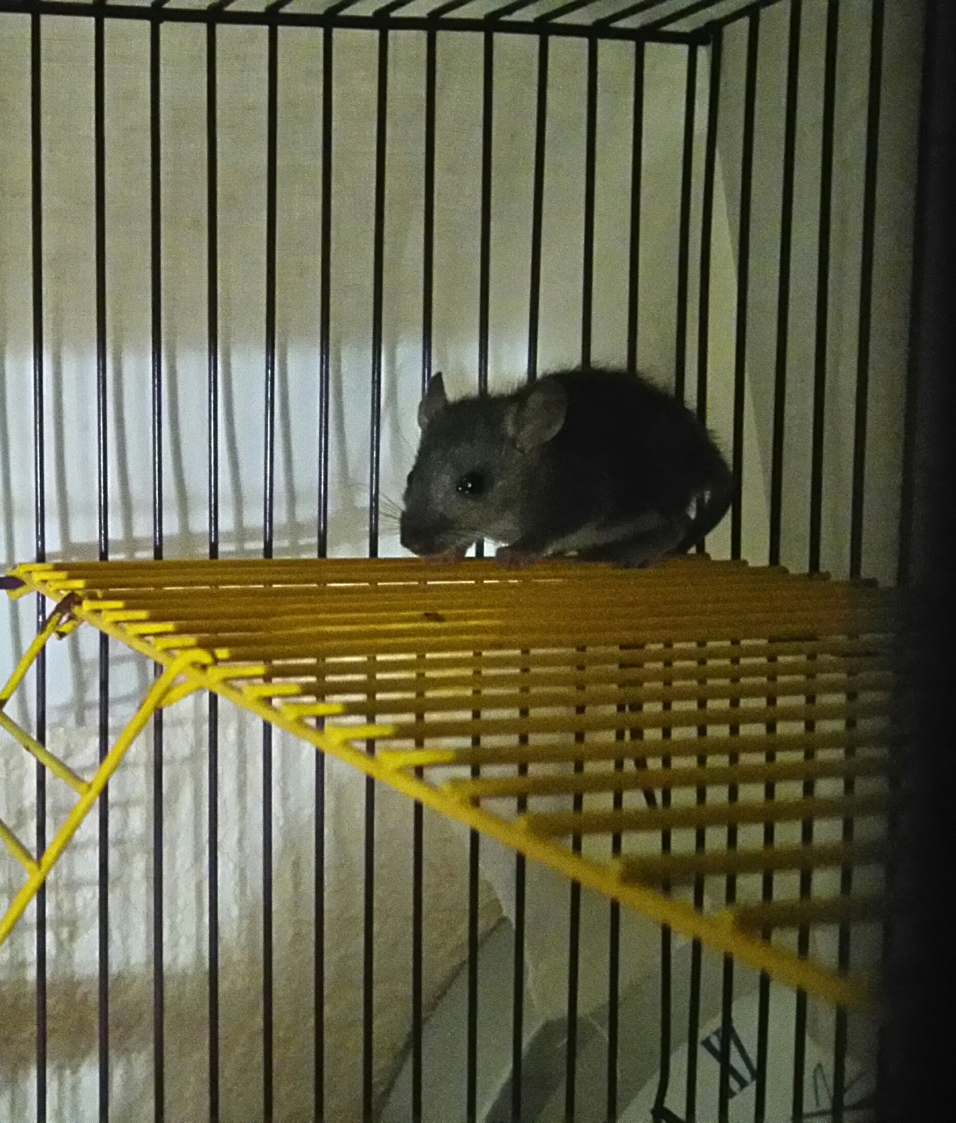 По сей день любит жевать мои пальцы, хотя ни разу не прокусила, просто схватит и смотрит изучающе прямо в глаза, комнатный террорист просто, наши декоративные смущённо отворачиваются от неё, если поднести. Зато быстро распробовала всяческие крысиные деликатесы и привыкла к мягким постелькам