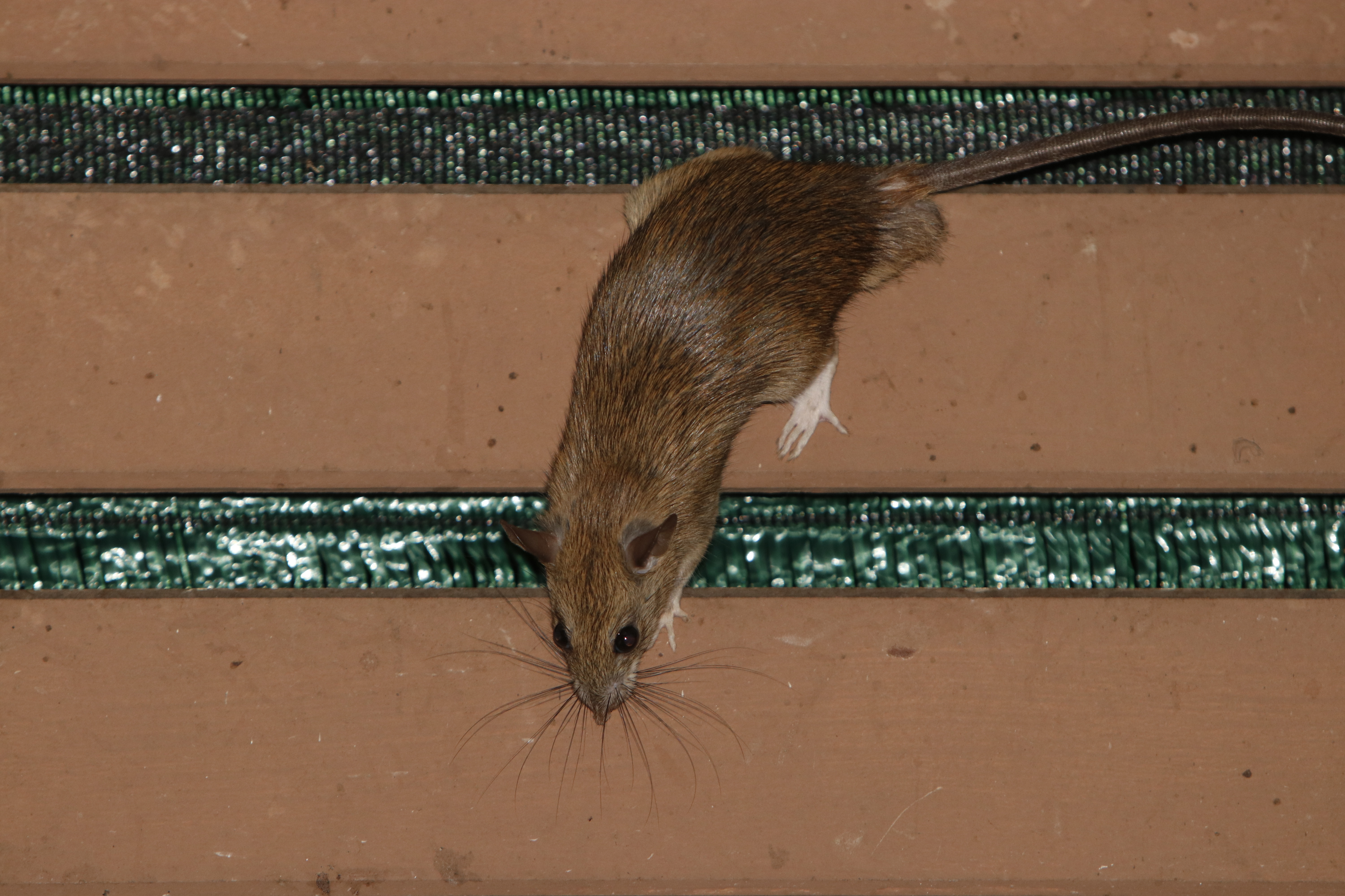 Крысей прекрасен! Он просто король среди ниндзя. Он курсирует между старым диваном, где сделал себе гнездо и мусорным ведром на кухне. Мы его часто видим в момент, когда он бежит через небольшие открытые пространства вдоль плинтуса, но ловить даже не пытаемся. Я несколько раз переделывал ловушку, но он все понял и стал еще осторожнее. Если раньше он туда заходил и собирал еду вокруг приманки, то теперь даже перестал туда заходить.