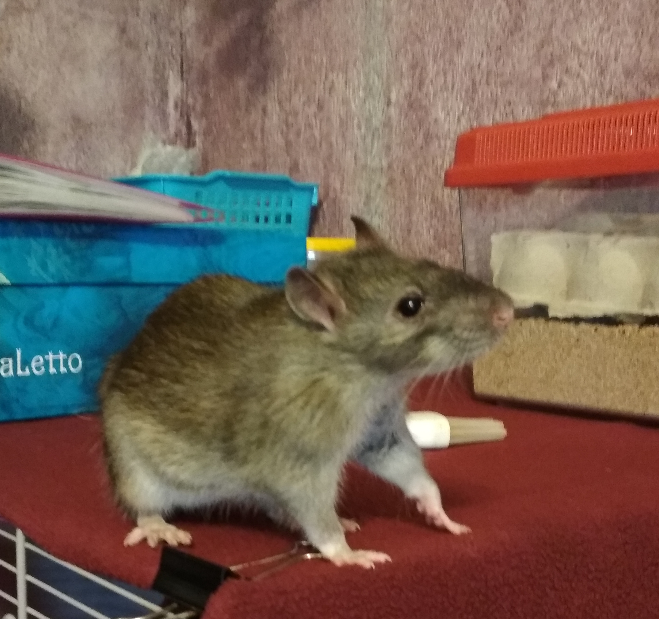 ) и наконец смог подружиться с девочками! Так что теперь он уже вот как месяц живет в большой клетке с девчонками, радостный, счастливый и самый главный пасюк в клетке