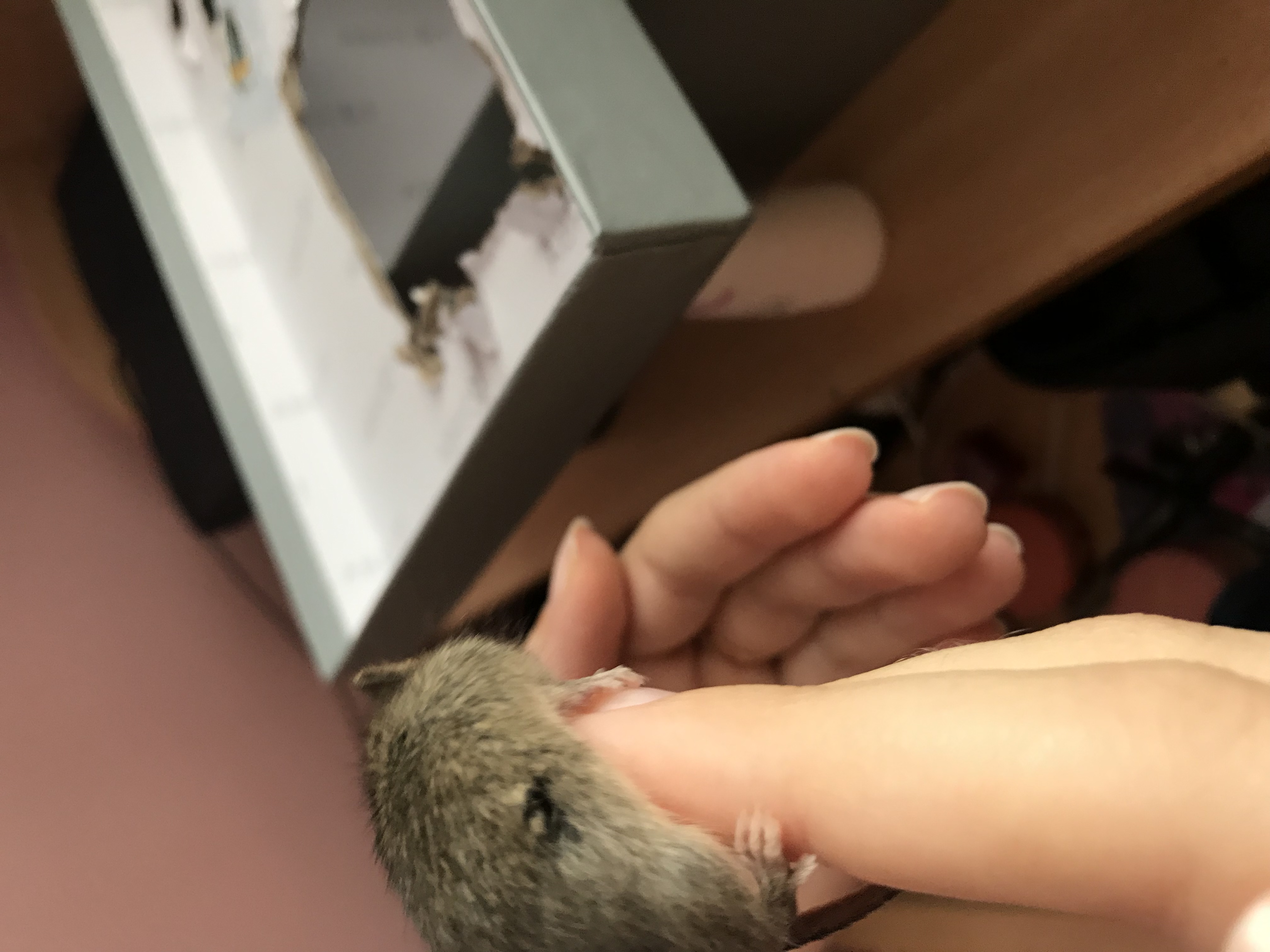Сегодня нашли этого малютку в подъезде , бегал по площадке между этажами. Подумали что крысёныш. Мы сначала думали не тревожить его, а потом шли обратно минут через 20 и он всё ещё был там. Решили что он не может спуститься, потому что он совсем маленький. Решили взять на передержку. Постелили ему в коробку мягкие полотенца, накрошили салфеток, поставили крышечку с водой и гречкой размоченой, так же поставили бутылку с горячей водой, что бы он грелся. Сейчас сомневаемся по поводу того, крысёнок это или мышёнок и что с ним делать дальше. Оставлять или отпускать? А то прочитали в интернете, что мышата дикие в неволе умирают в течении недели. Помогите пожалуйста!